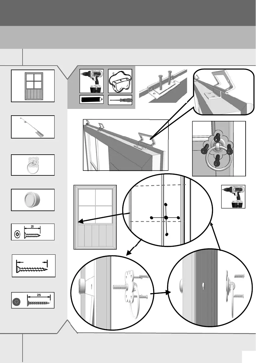 GB-IE Position the "black ring handle A0508" on the outside over the door frame work, (not on the in fill boards)