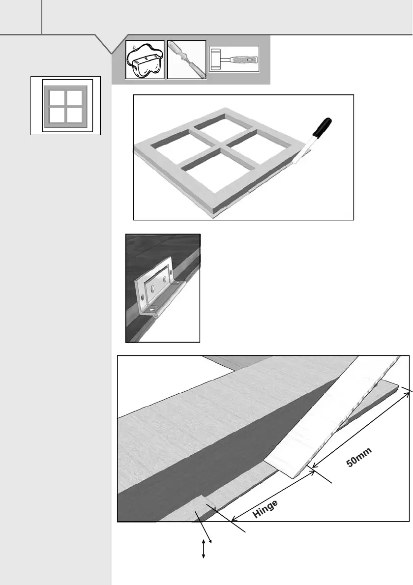 Rebate the top of the “B0017” window insert 3mm deep. Use the hinge to mark the length. To comply
