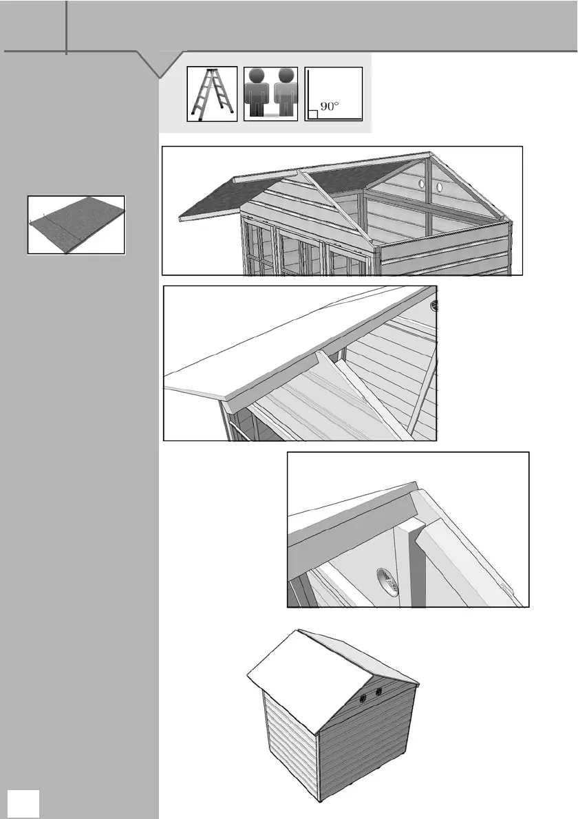 GB-IE Place the roof panels on the building lining them up with the cladding at the back and with each other