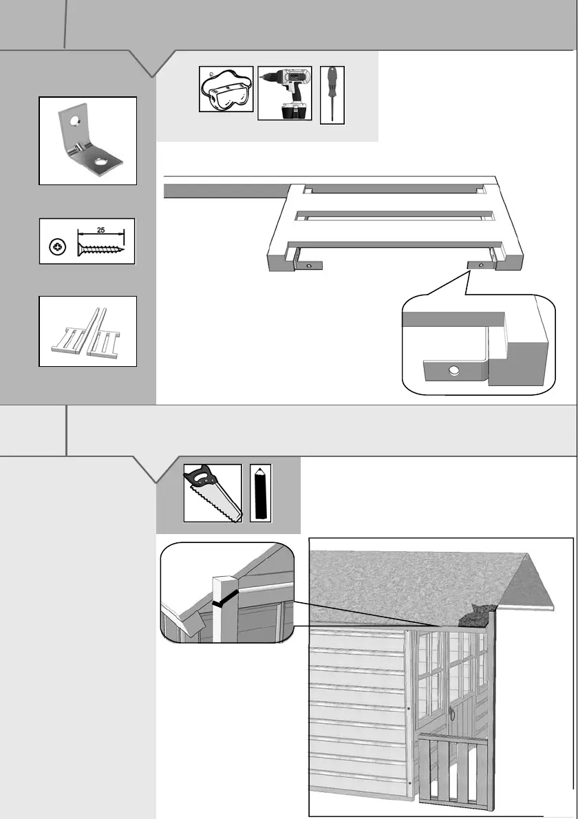 GB-IE For each side, align, mark the post to the underside of the roof and trim.