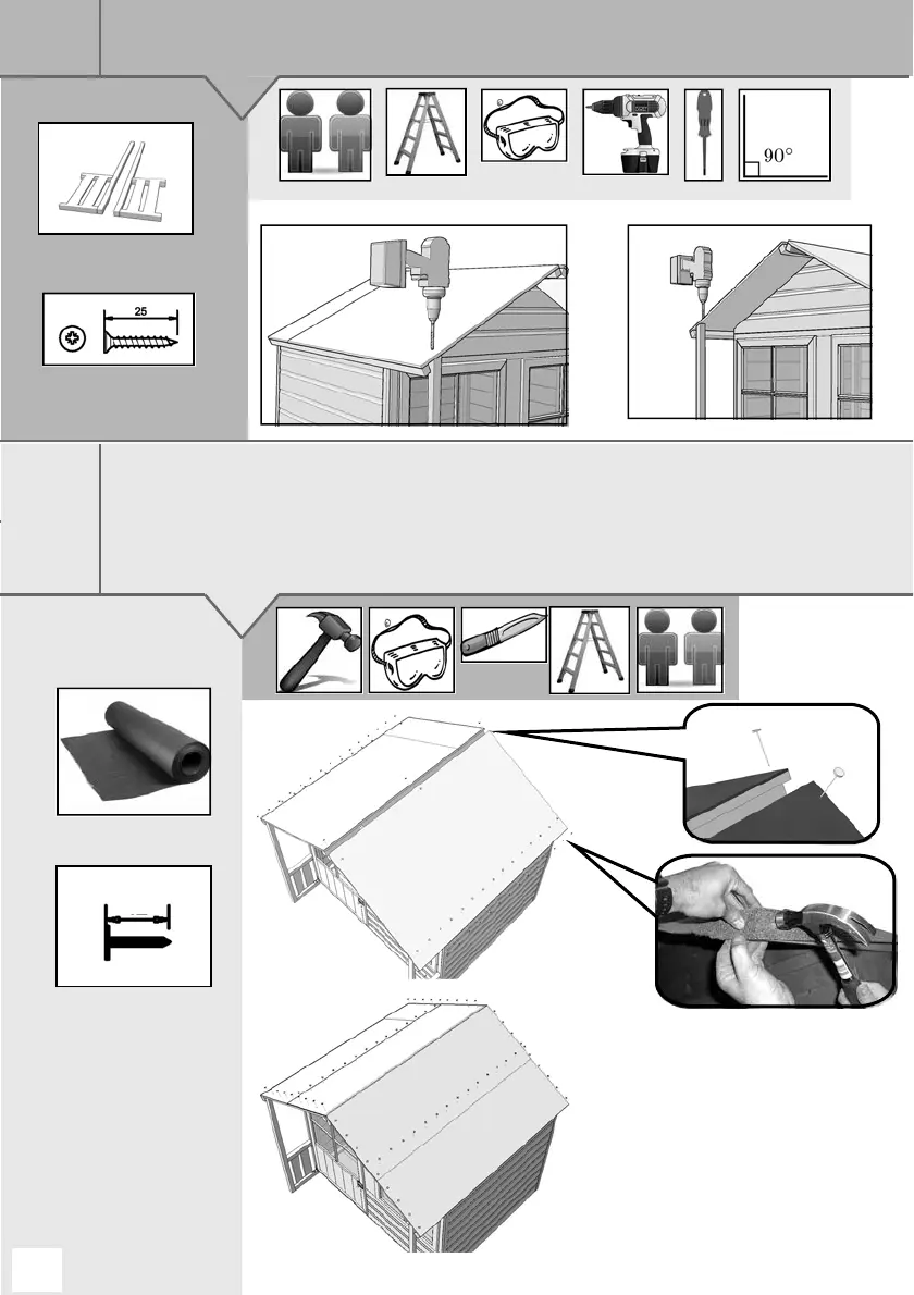 The third piece overlaps the lower pair and goes over the ridge. Nail at approximately 100mm centres