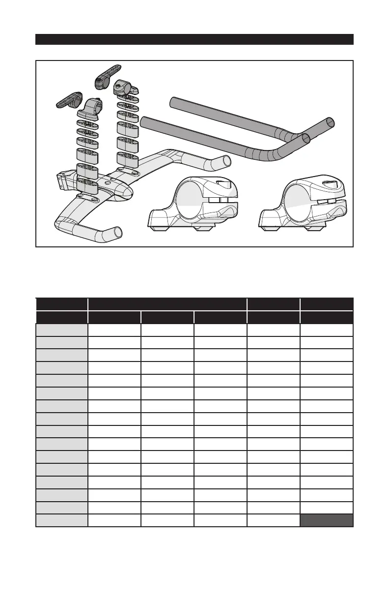 adjustment (0-75mm height) and angle (0° and 8° brackets). Use the following Riser Chart to determine the correct