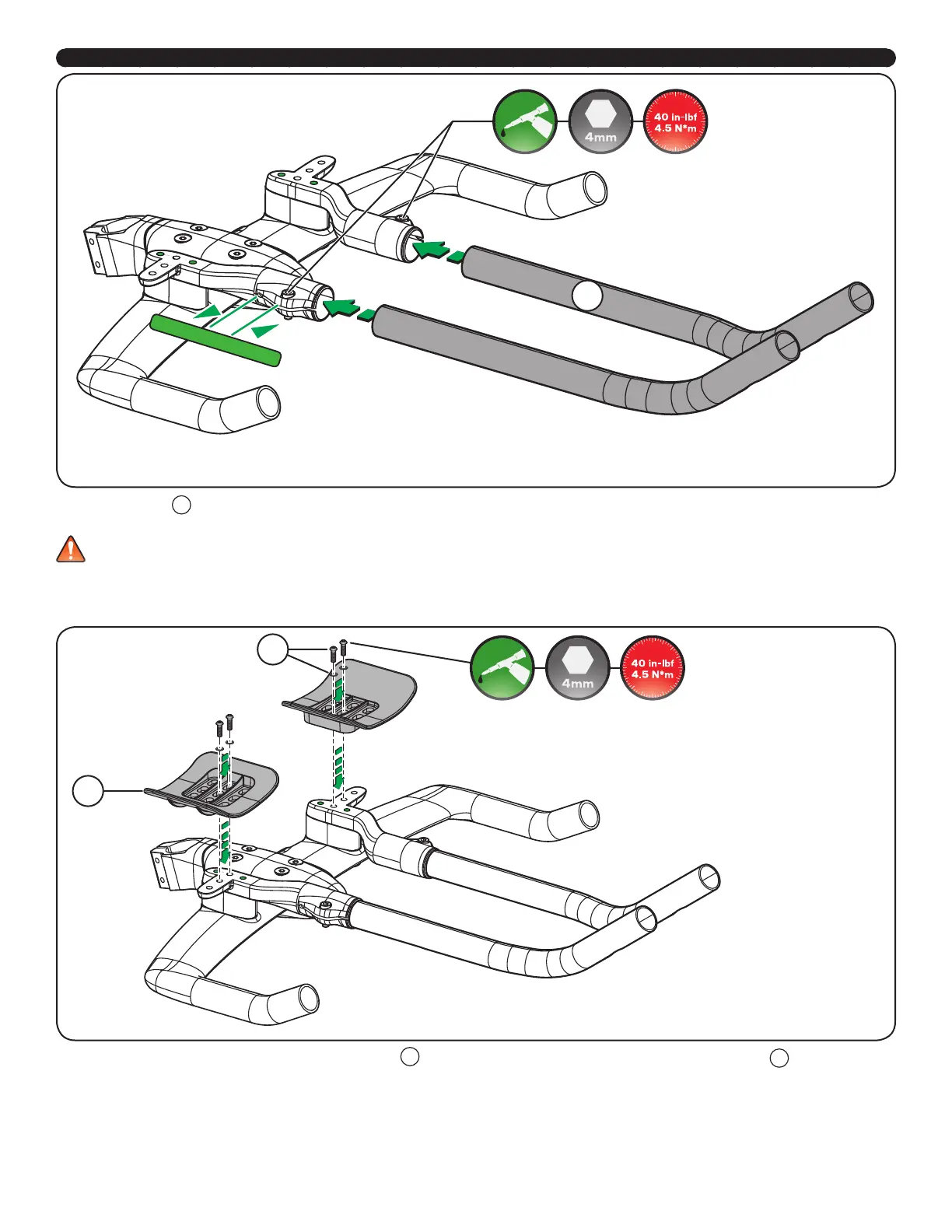 length, 4mm Allen hex round head bolts). The pad holders have three lateral and three fore-aft position options (see page 11).