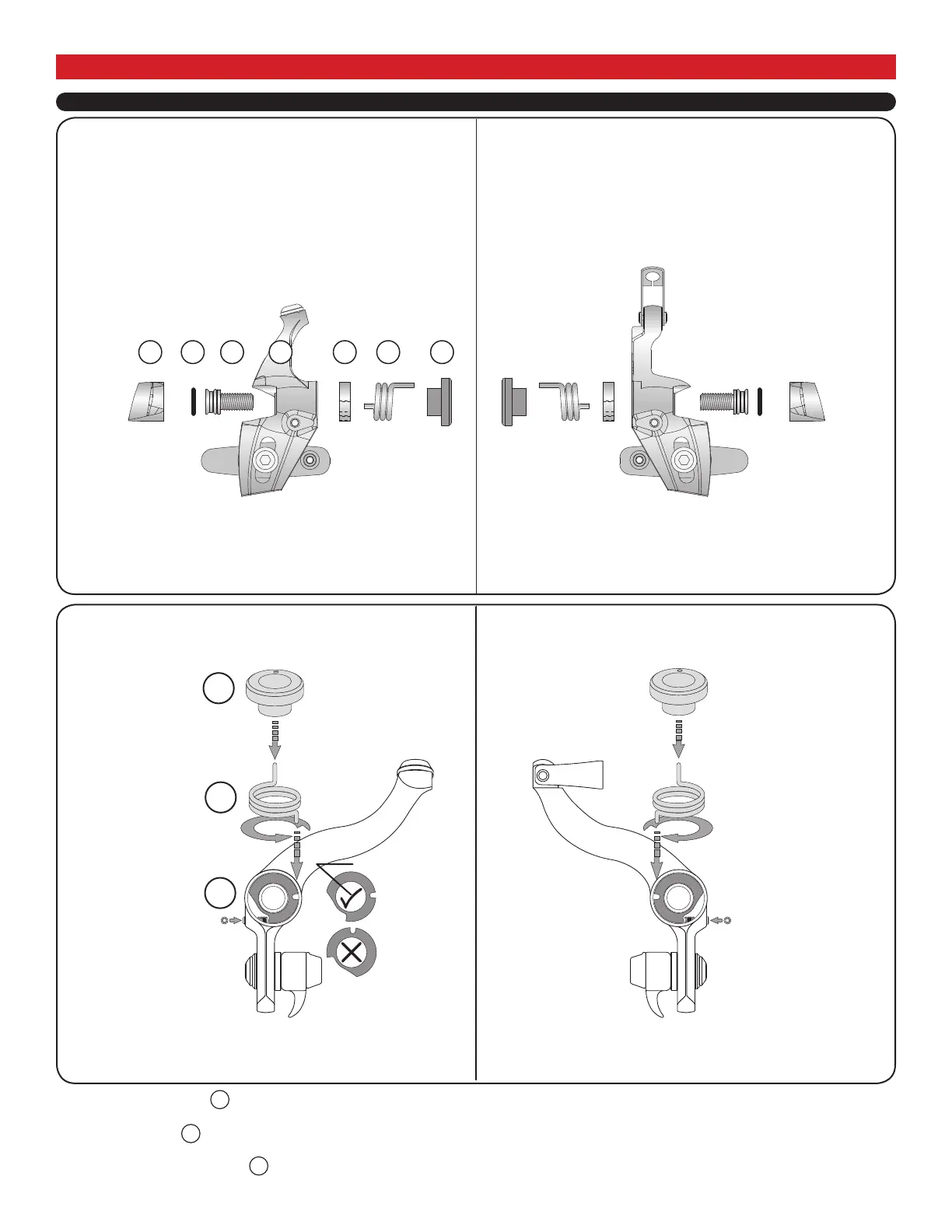 , clockwise for the drive-side brake, counter-clockwise for the non-drive-side brake. The shorter of the two spring pins goes in