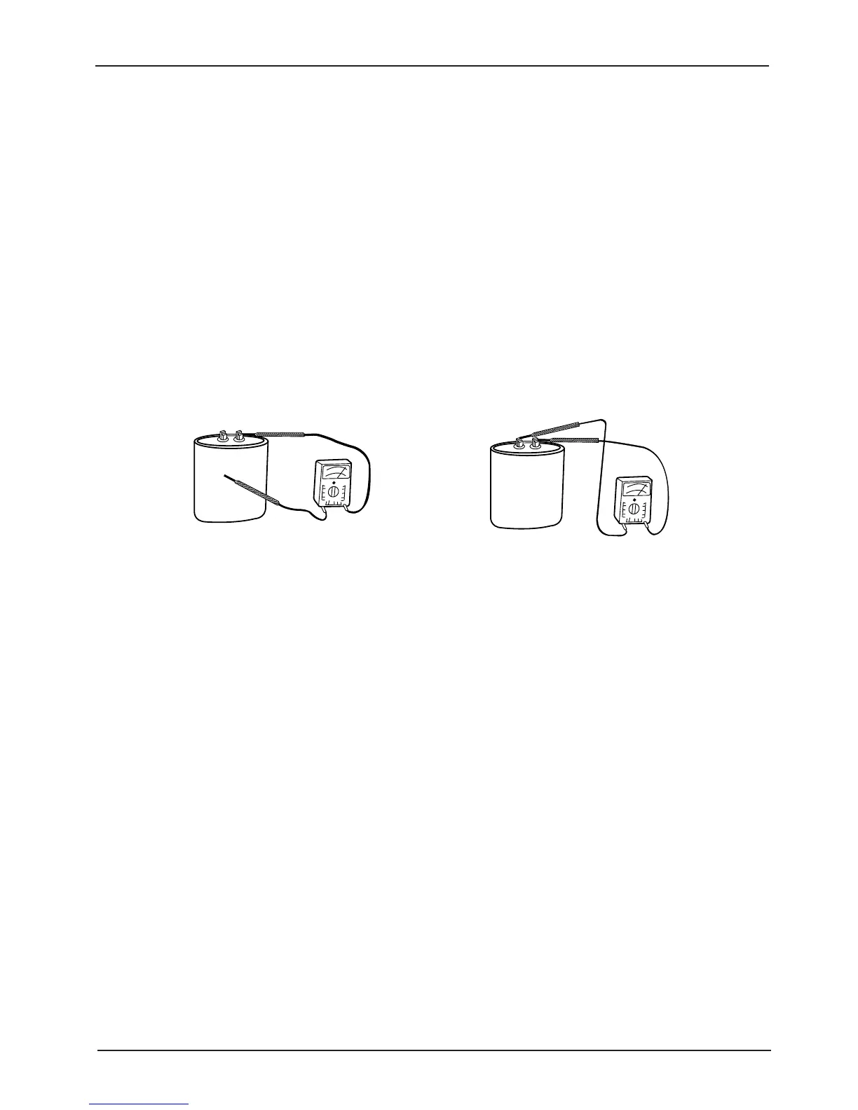 (3) After discharging, contact both terminals of tester with the terminal of condenser to see the dial vibrating