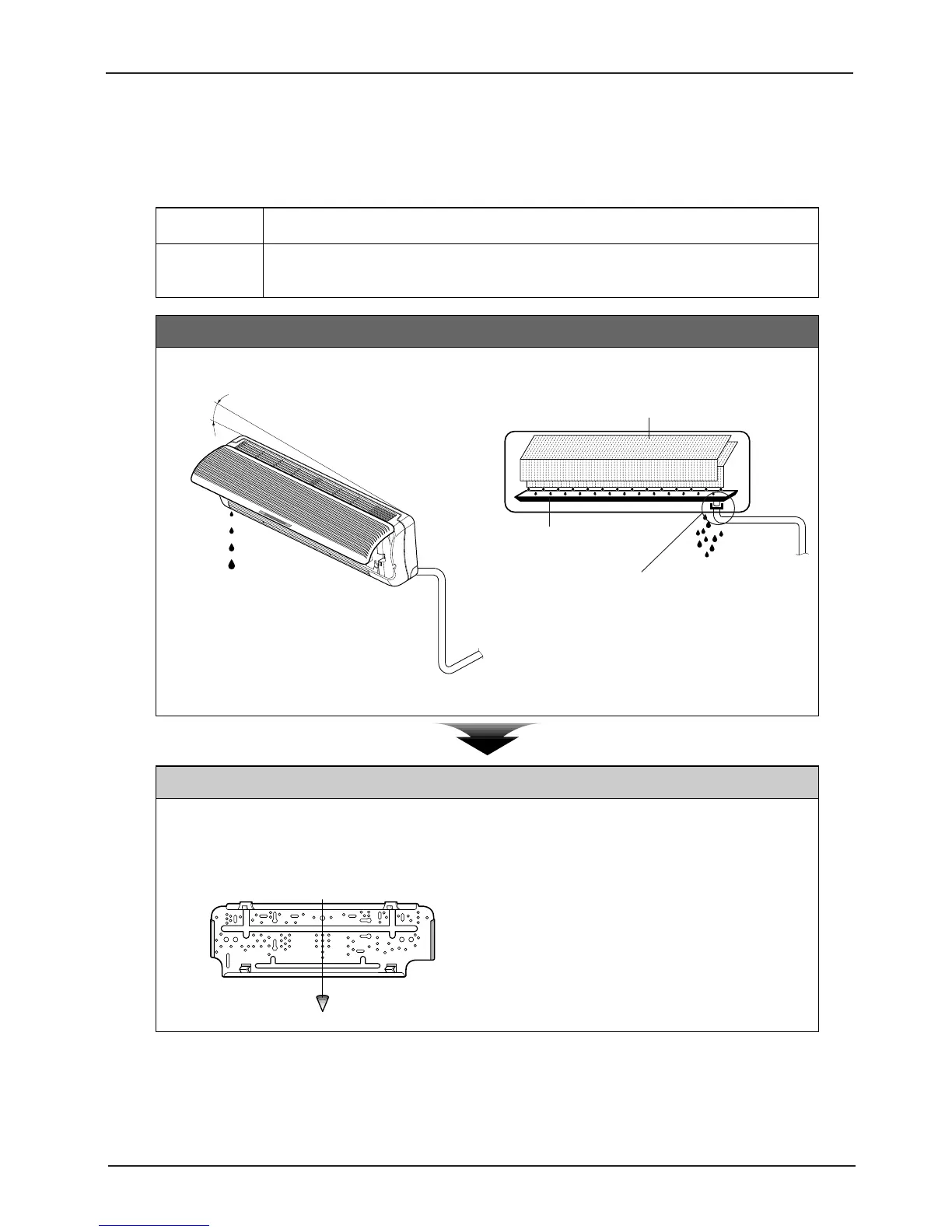 tilted 2~3° to drain-pan's drain side)