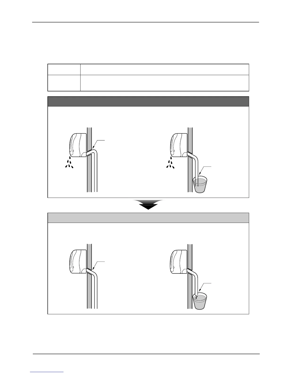 Water leaks caused by upwarded drain hose along the wall-through hole and clogged drain
