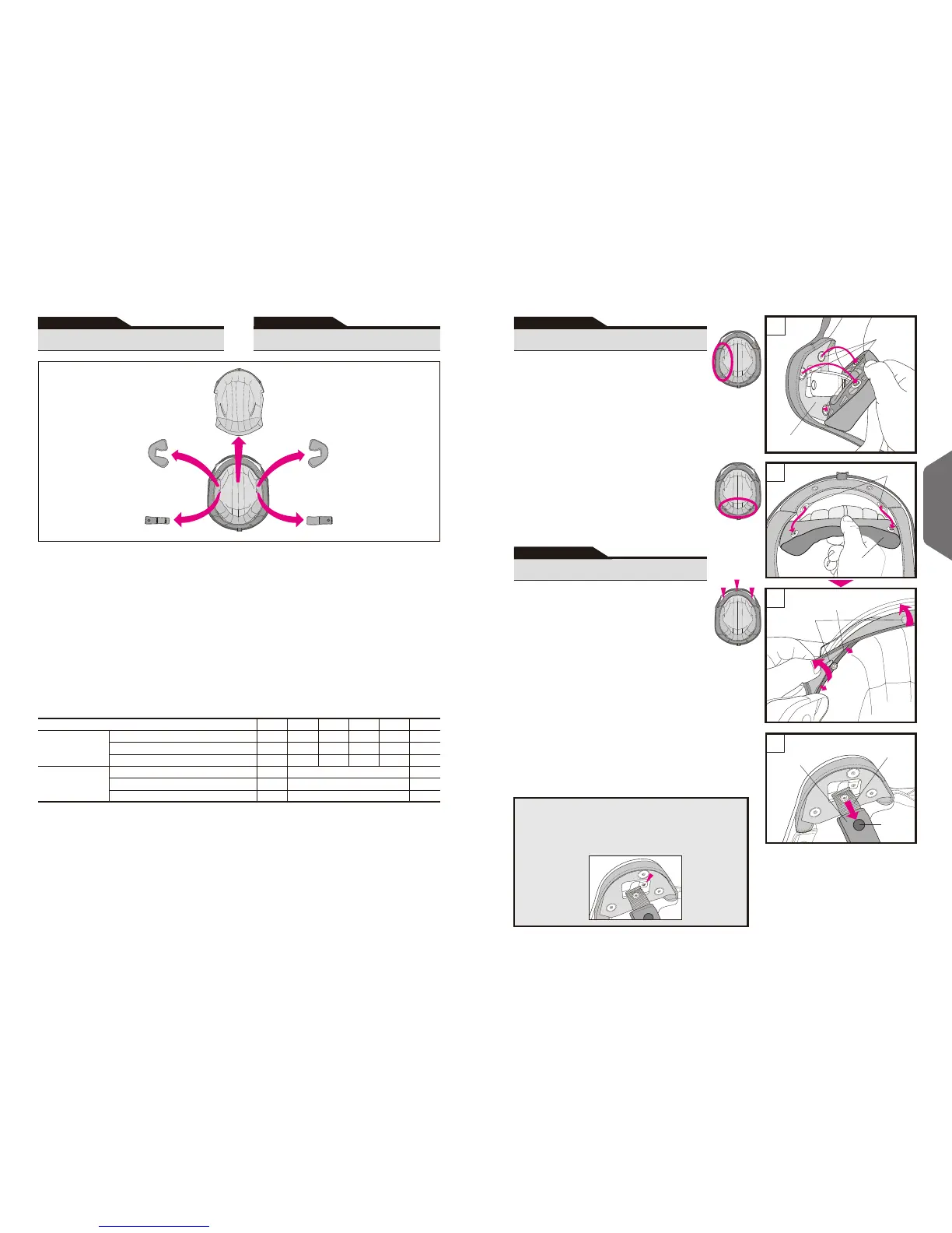 ・ Das Kopfpolster muss der Helmgröße angepasst
