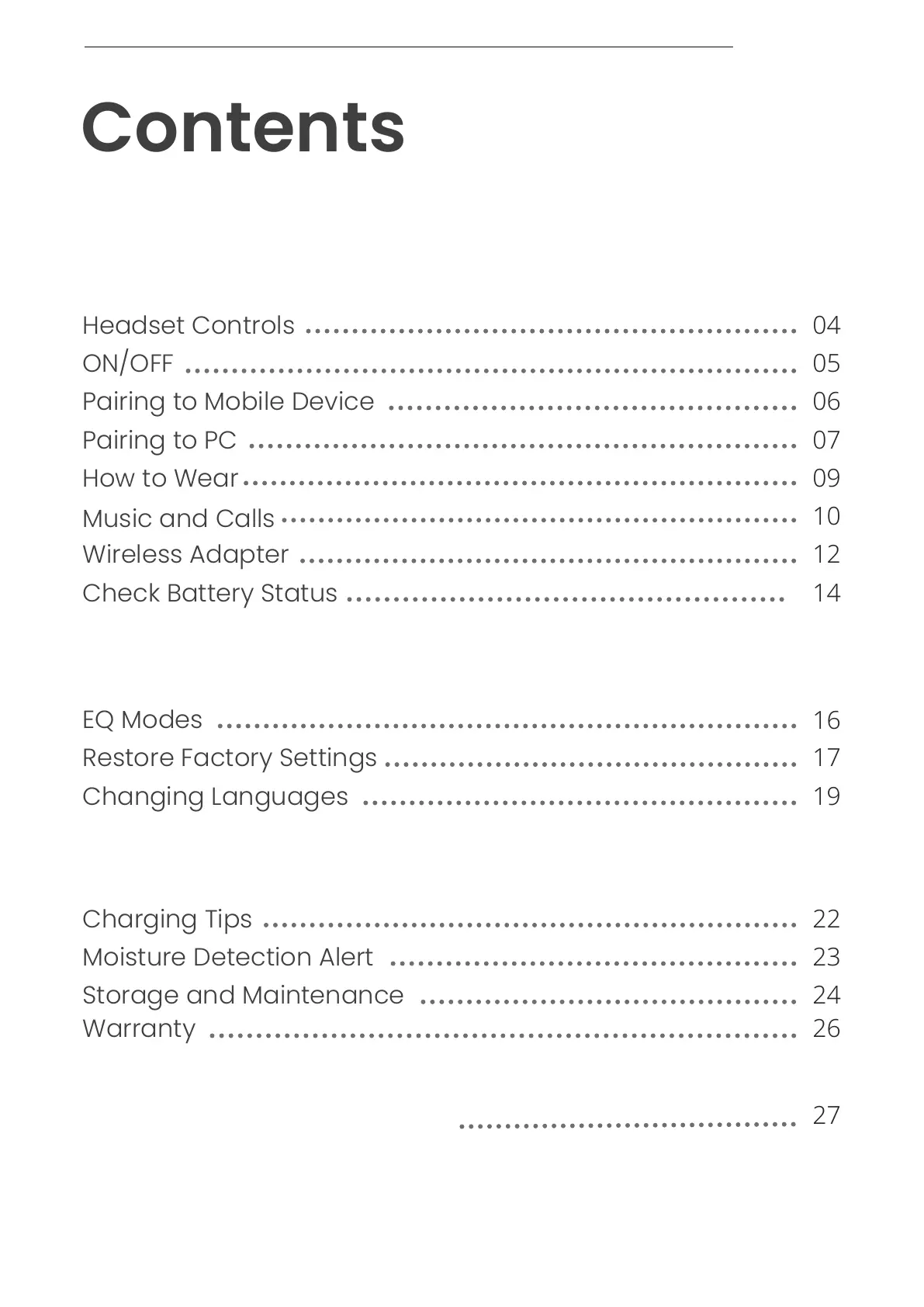shokz OpenComm2 UC - Table of Contents