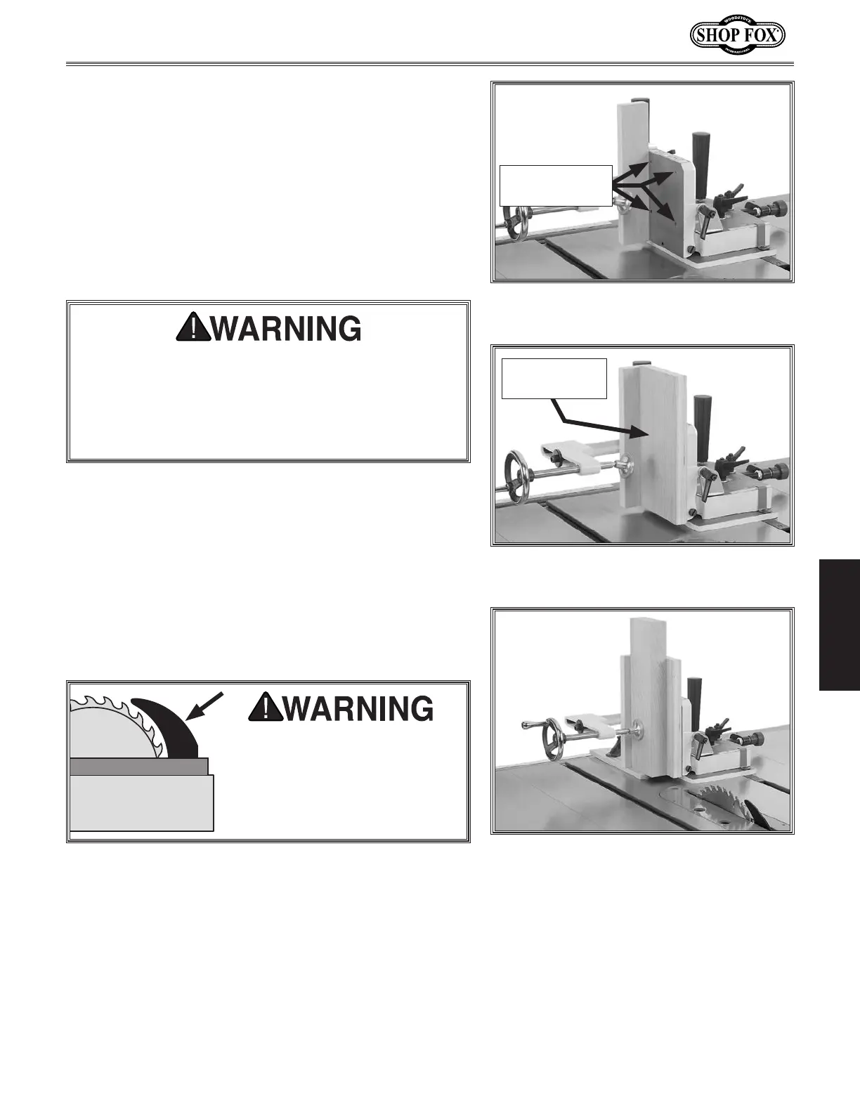 to reduce risk of kickback. ALWAYS turn saw OFF,
