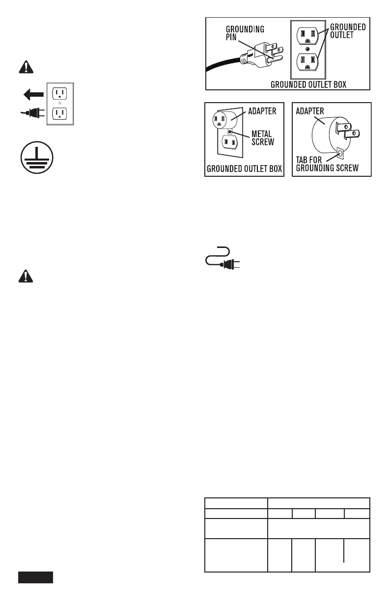 and grounding plug. The plug must be inserted into