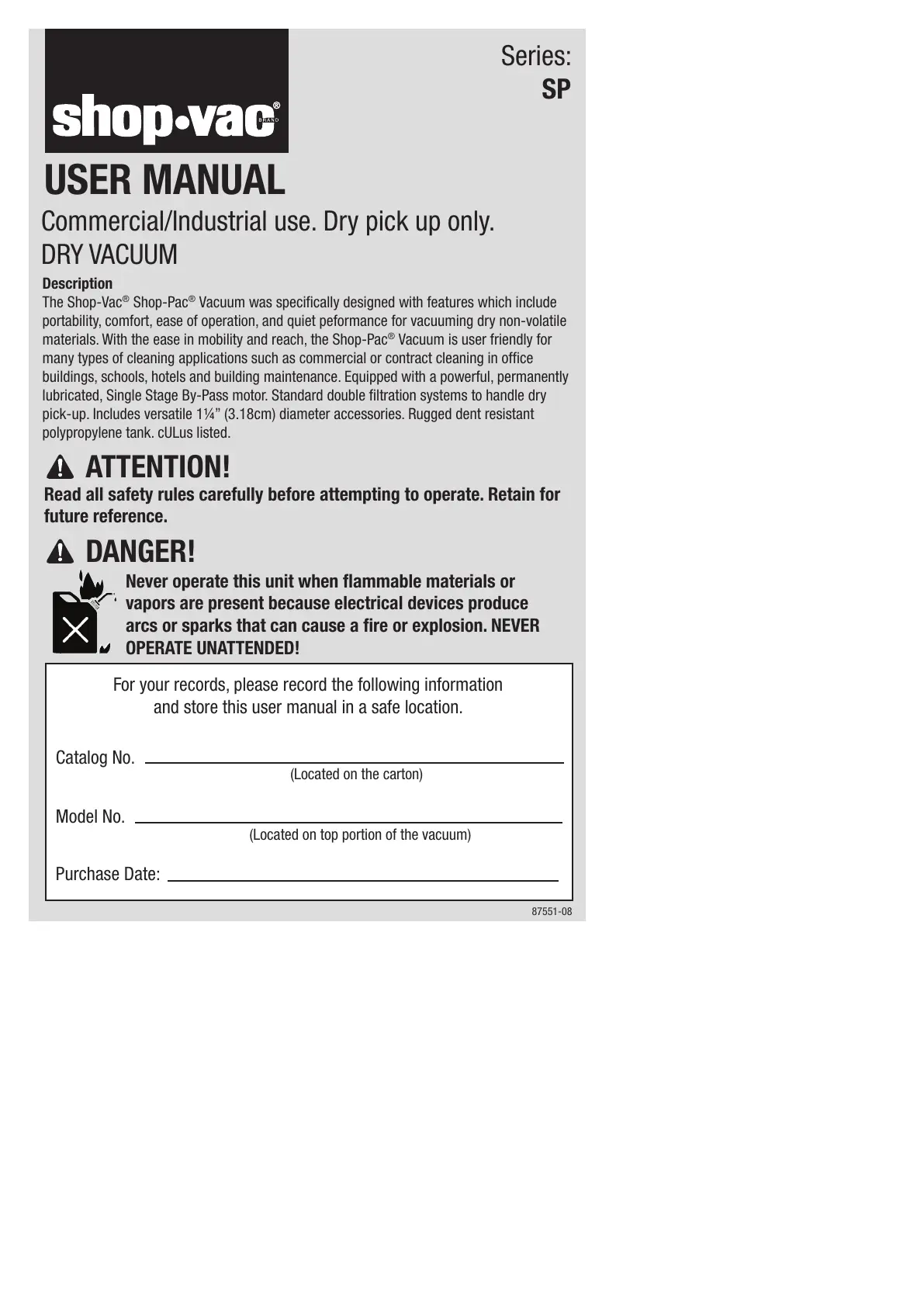 Commercial/Industrial use. Dry pick up only.