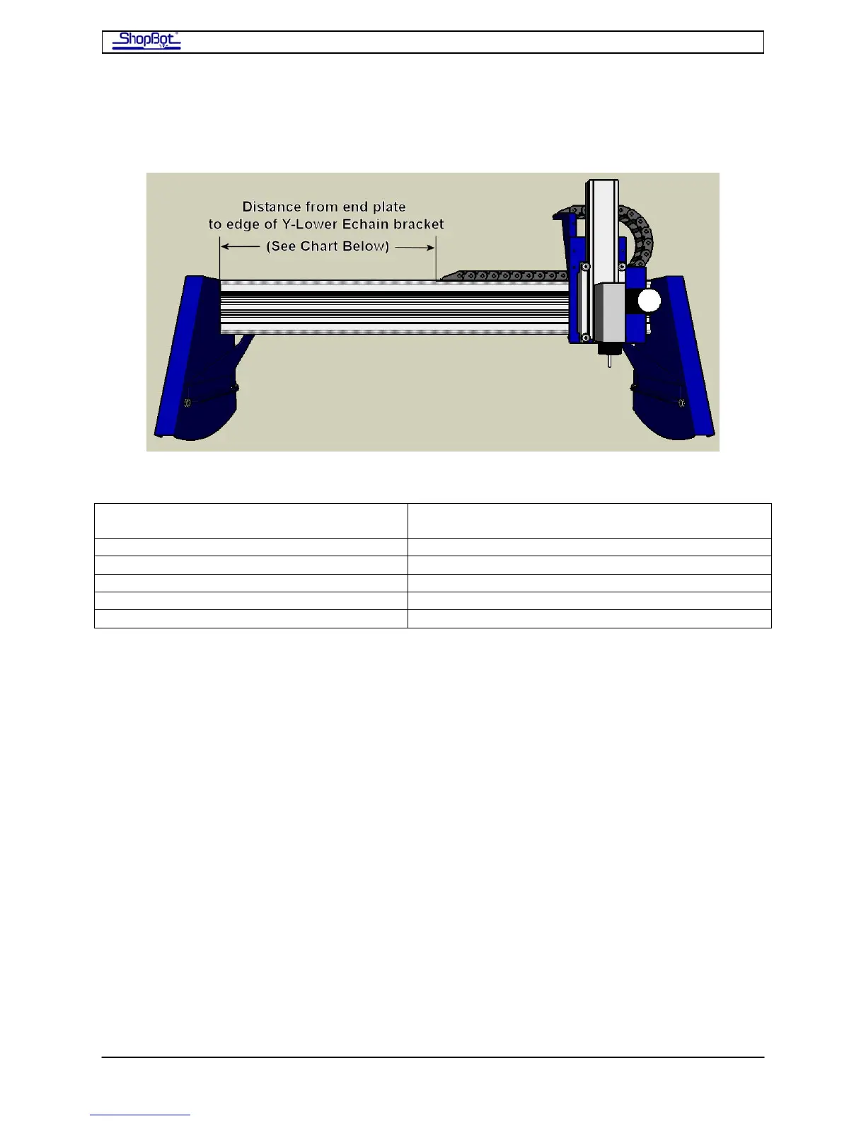 Chart showing distance from End Plate to edge of Y-Lower Bracket