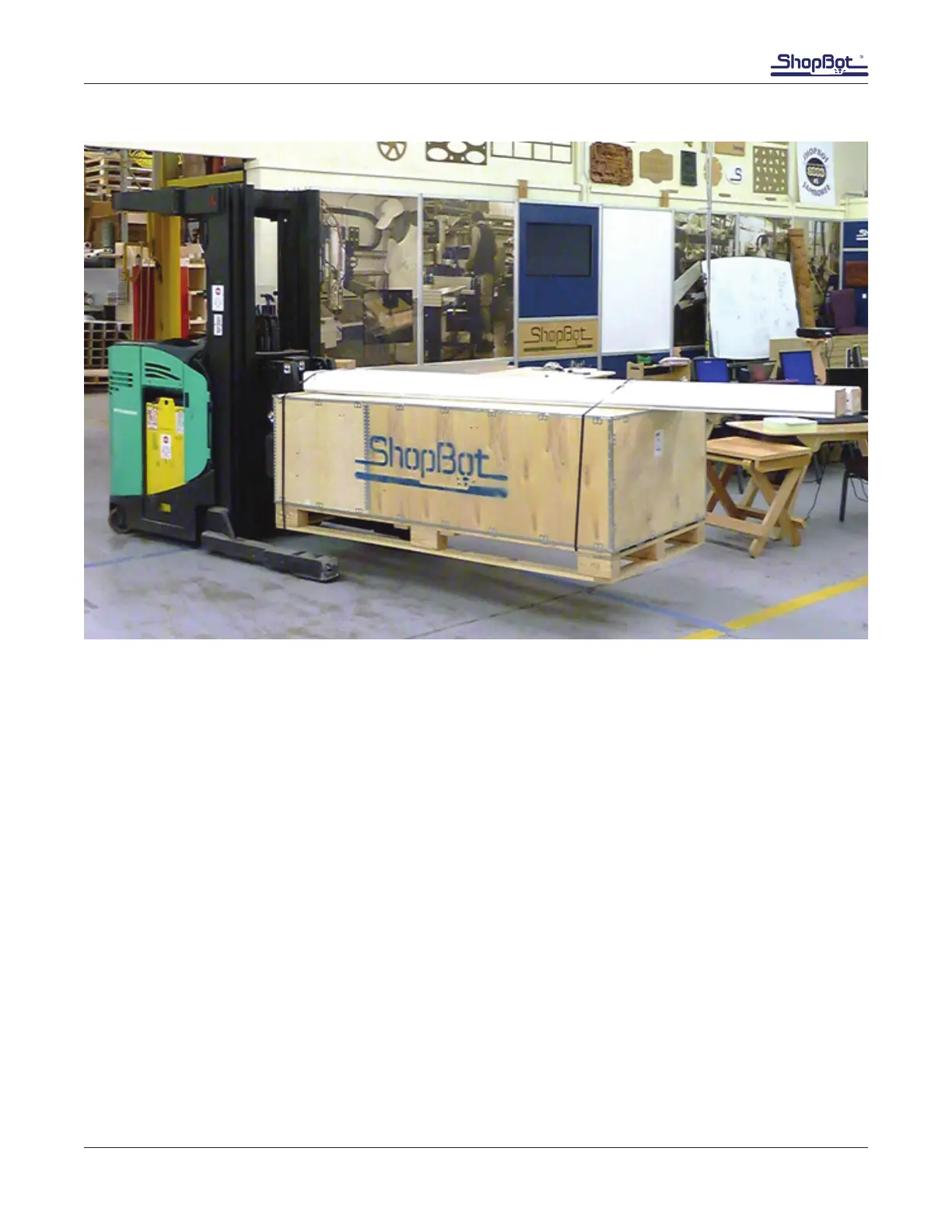 The ShopBot components arrive in two packages: a large wooden crate and a long box. The crate and
