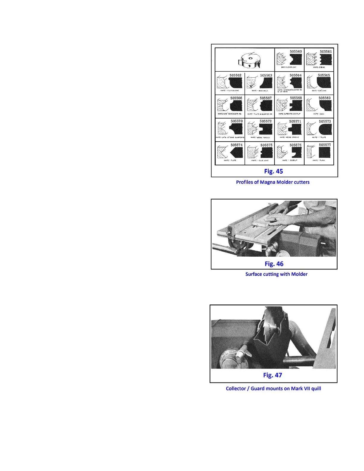variations of moldings, cut rabbets and grooves (Fig. 46) and