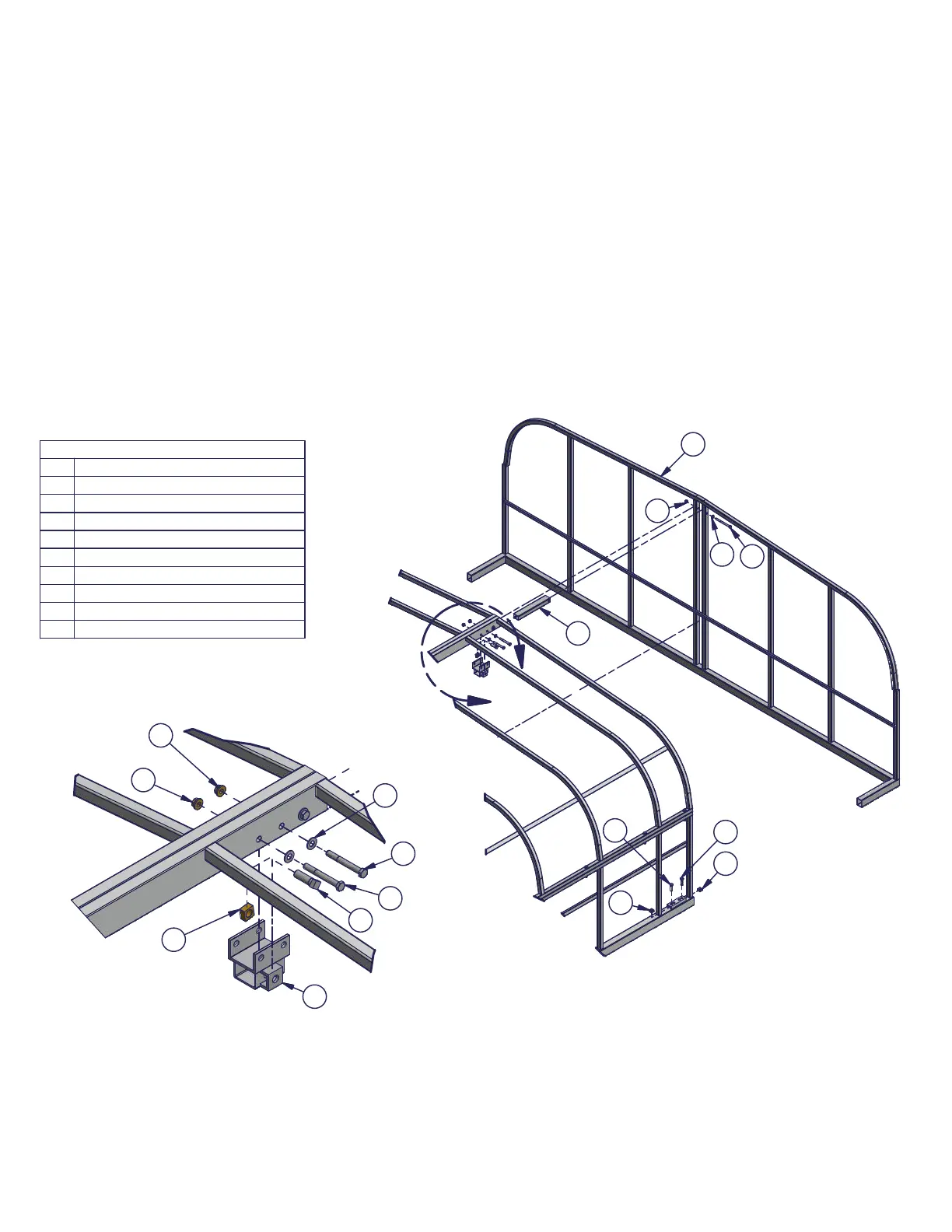 Step 7. Slide end weldment into the canopy assembly. Bolt 10 inch tube to the end weldment using 3/8