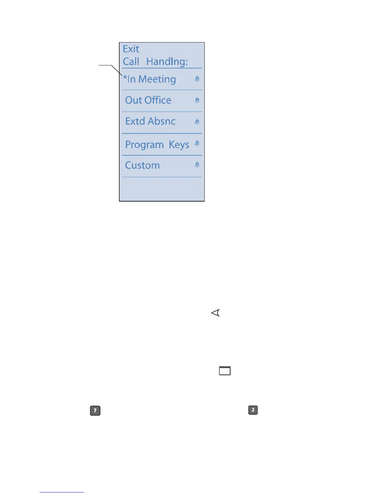 Step 2 Press the custom key to the left of Call Handling.