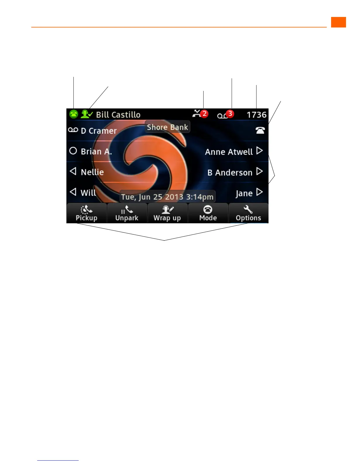 phone options. If you have an active call, you can use the soft keys to do such things as hang up, park