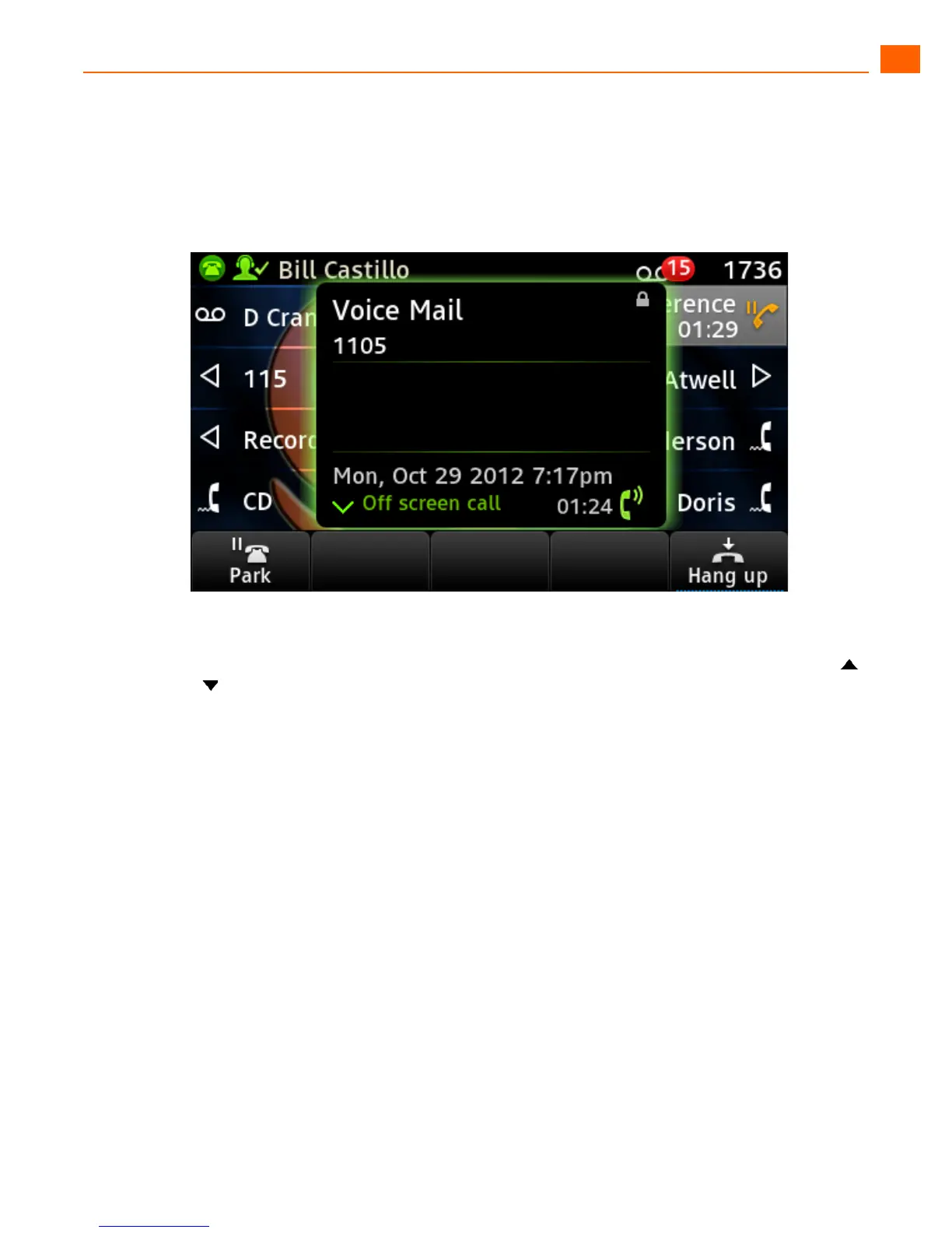 the call as an “Off screen call,” and the call is not associated with a call appearance button.