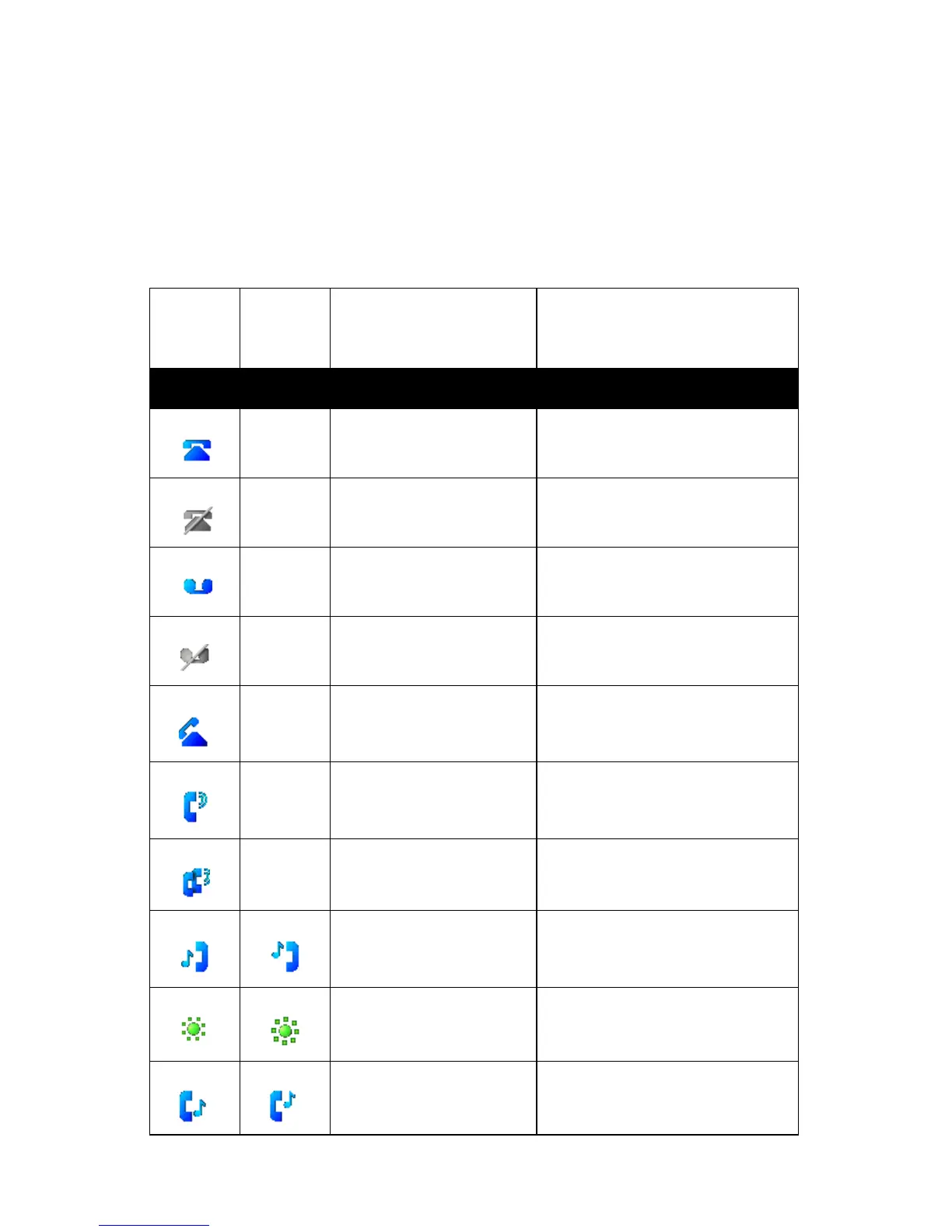 the device. The table below provides information about these icons, as well as
