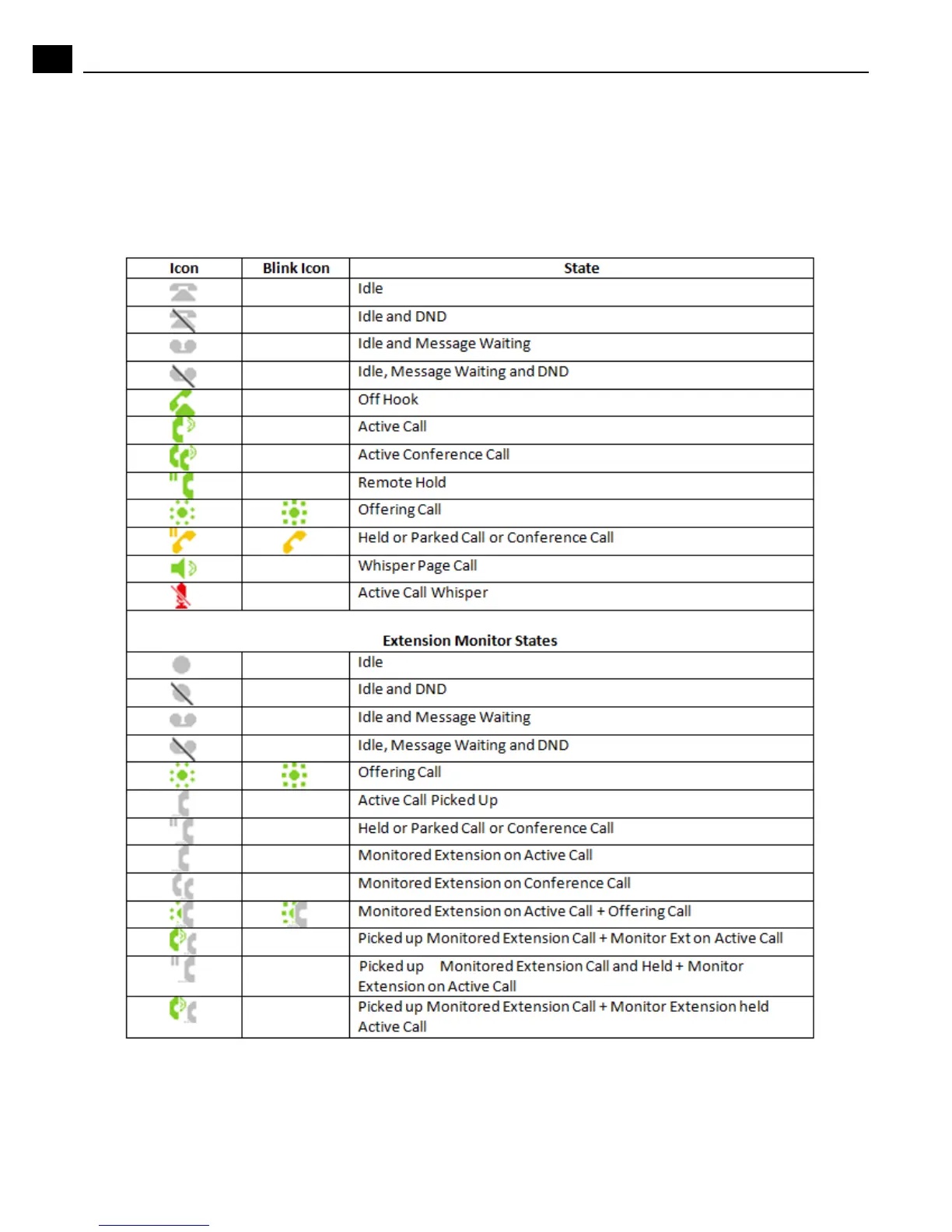 Your IP930D handset offers icons to indicate the call state. The table below lists the static and blinking