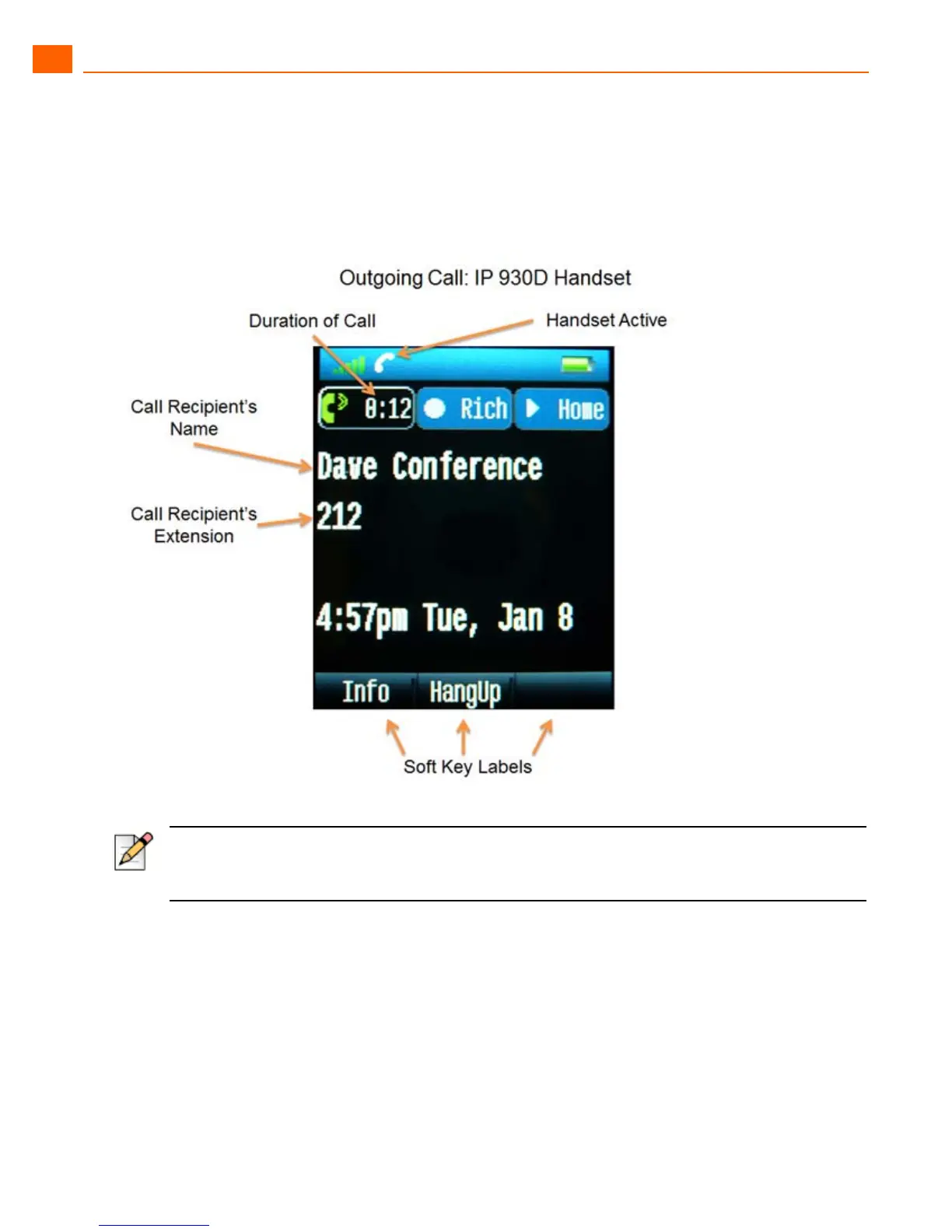 The figure below shows the information that appears on your IP930D handset when an outbound call