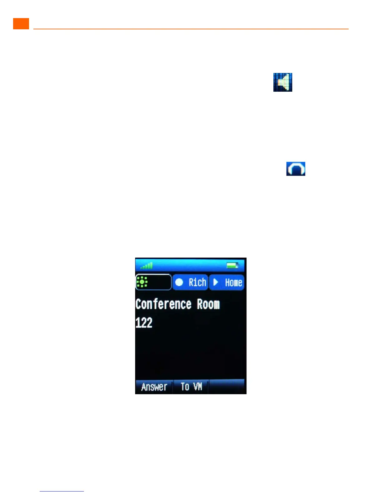 To answer a call, push Talk button when the phone rings. The headset icon appears in the