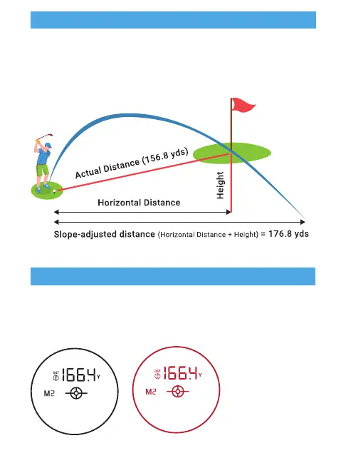 Adaptive Slope technology provides the golfer with compensated distance