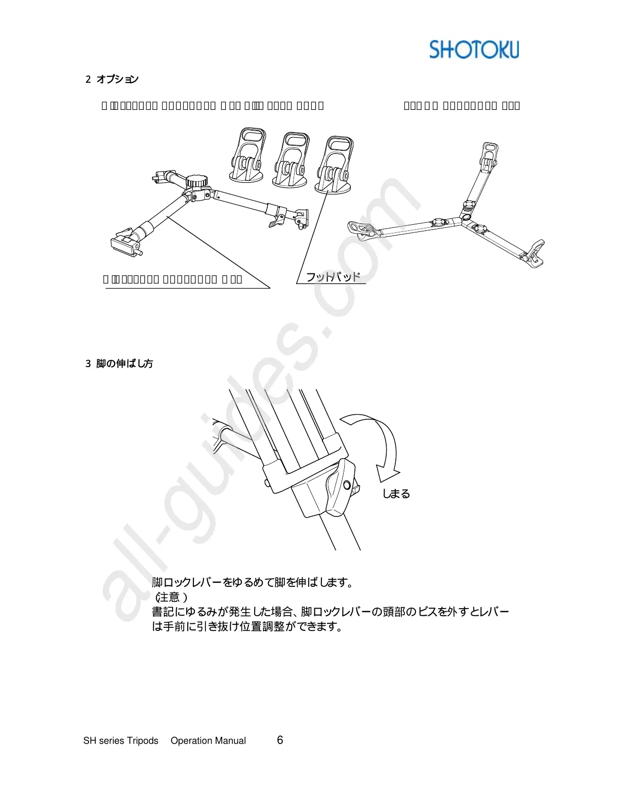 Shotoku TSA75 - オプション; 脚の伸ばし方
