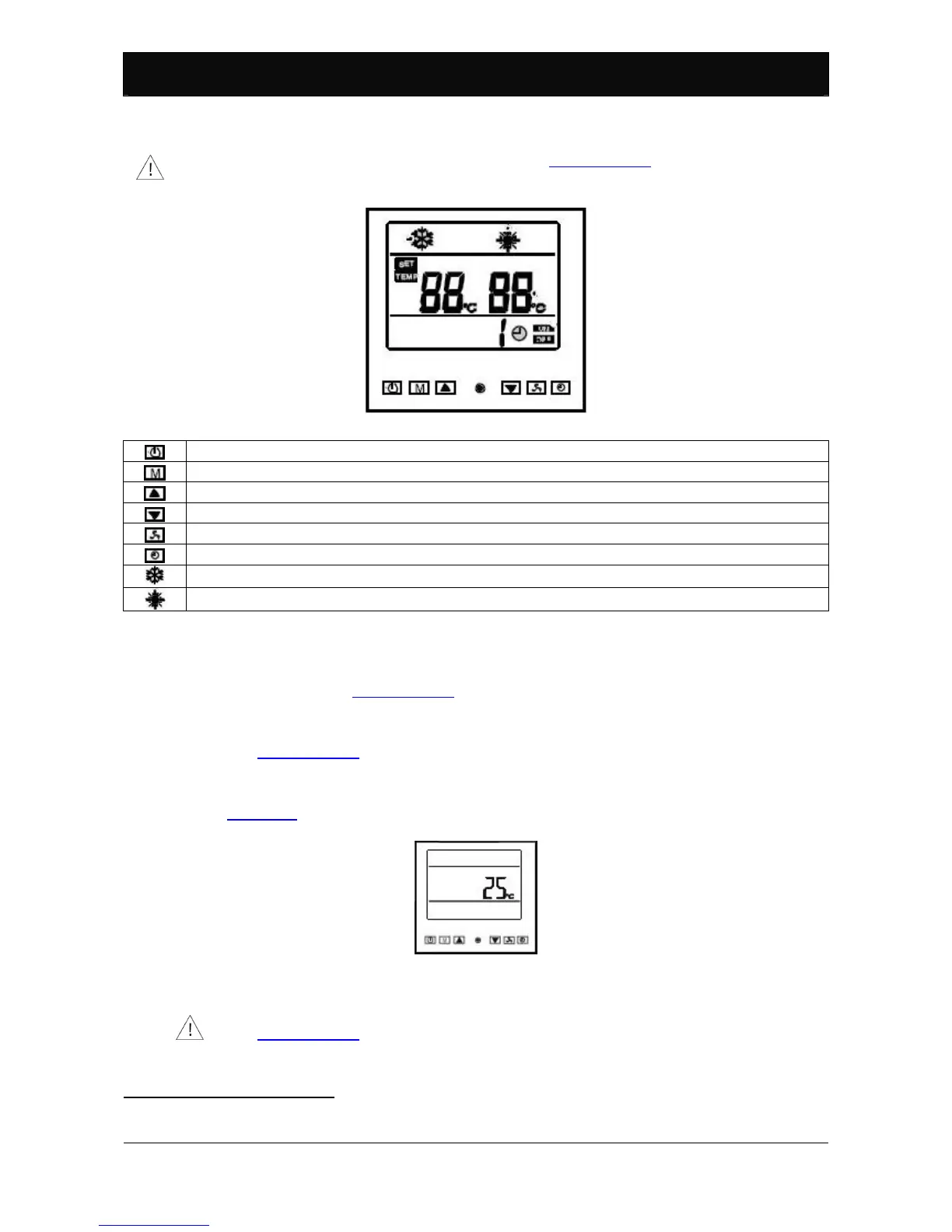 Table 2: control panel display symbol key.