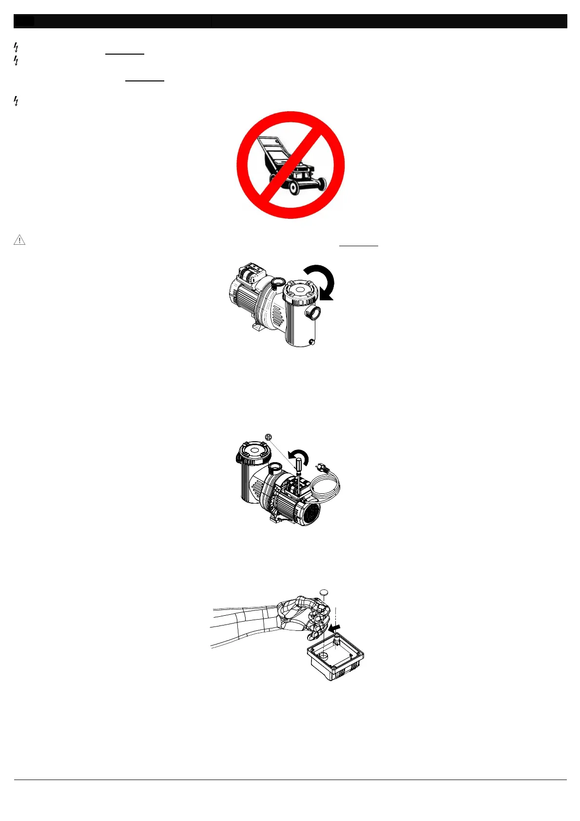 pool). Cutting the power cord and/or replacing the power plug is strictly prohibited.