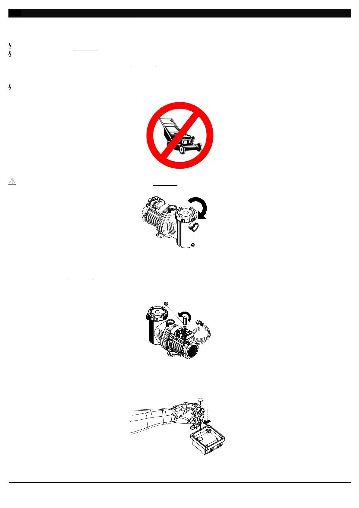 (stopcontact, minstens 3,5 [m] van de rand buiten het zwembad). Het is absoluut verboden de