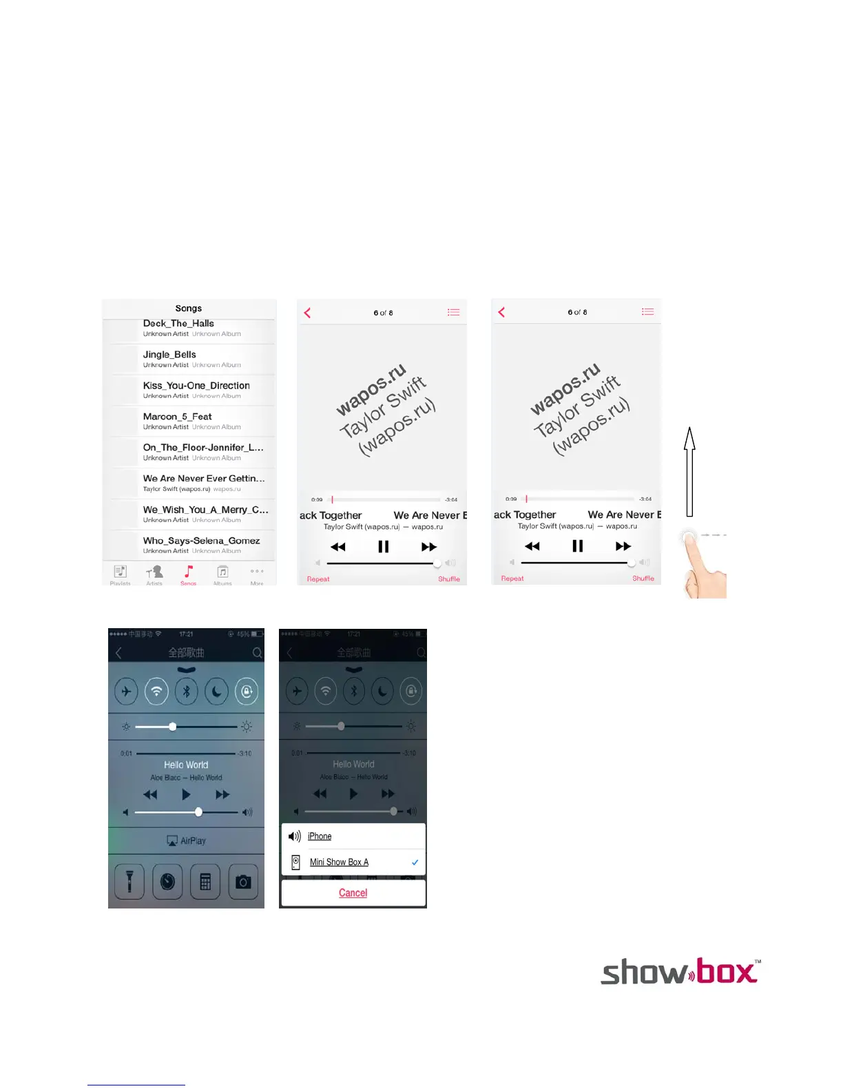 5. On the next screen, select “Show Box”. The music will begin playing through the Show Box and lights will