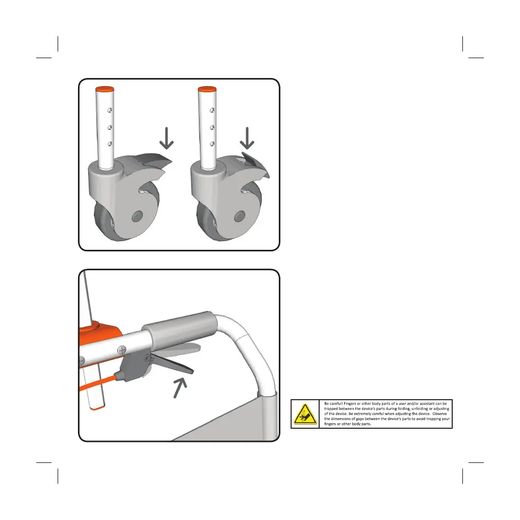 To unlock the castor wheels press down