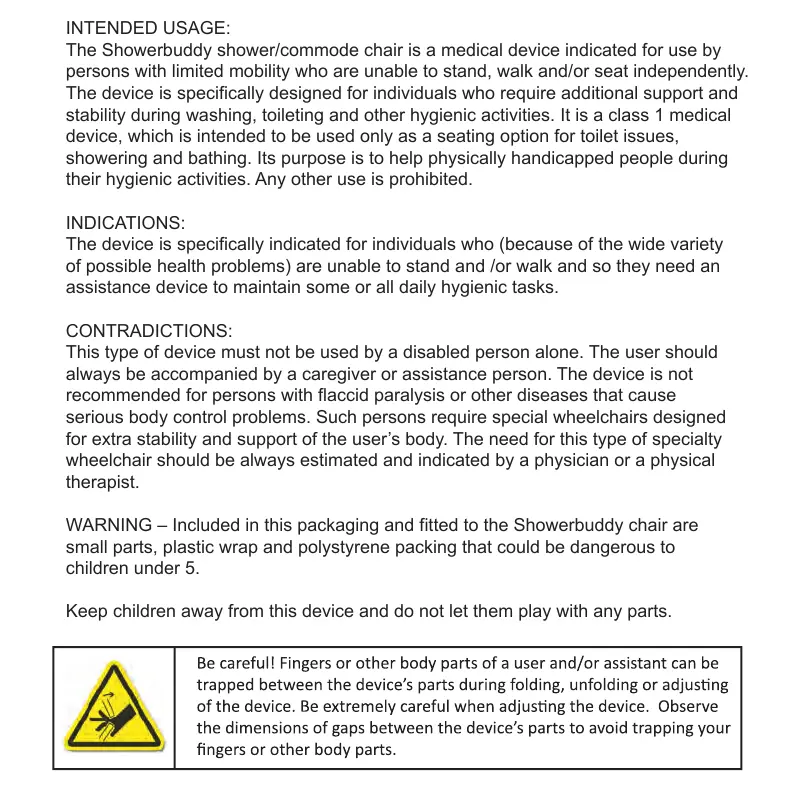 The Showerbuddy shower/commode chair is a medical device indicated for use by