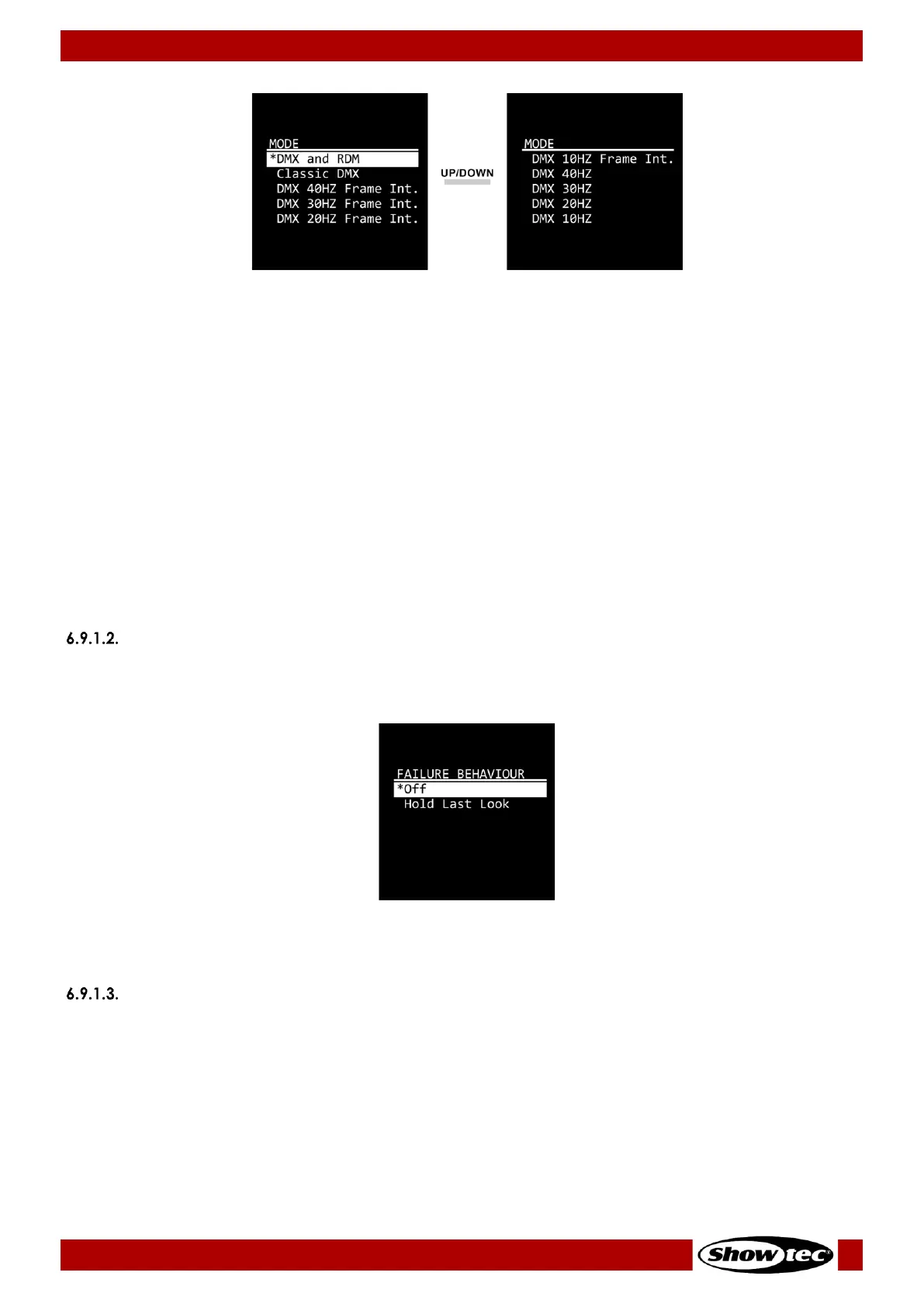 In this submenu you can set the behavior of the device in case of a DMX failure.