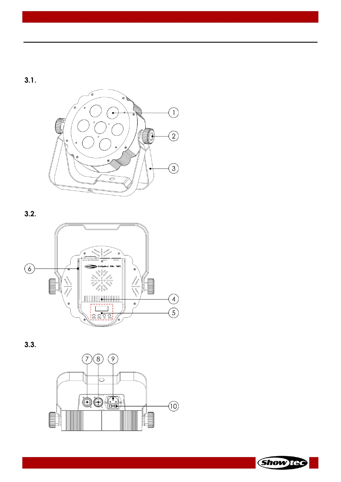SHOWTEC compact par 7 q4 - Description of the Device; Front View; Back View; Top View