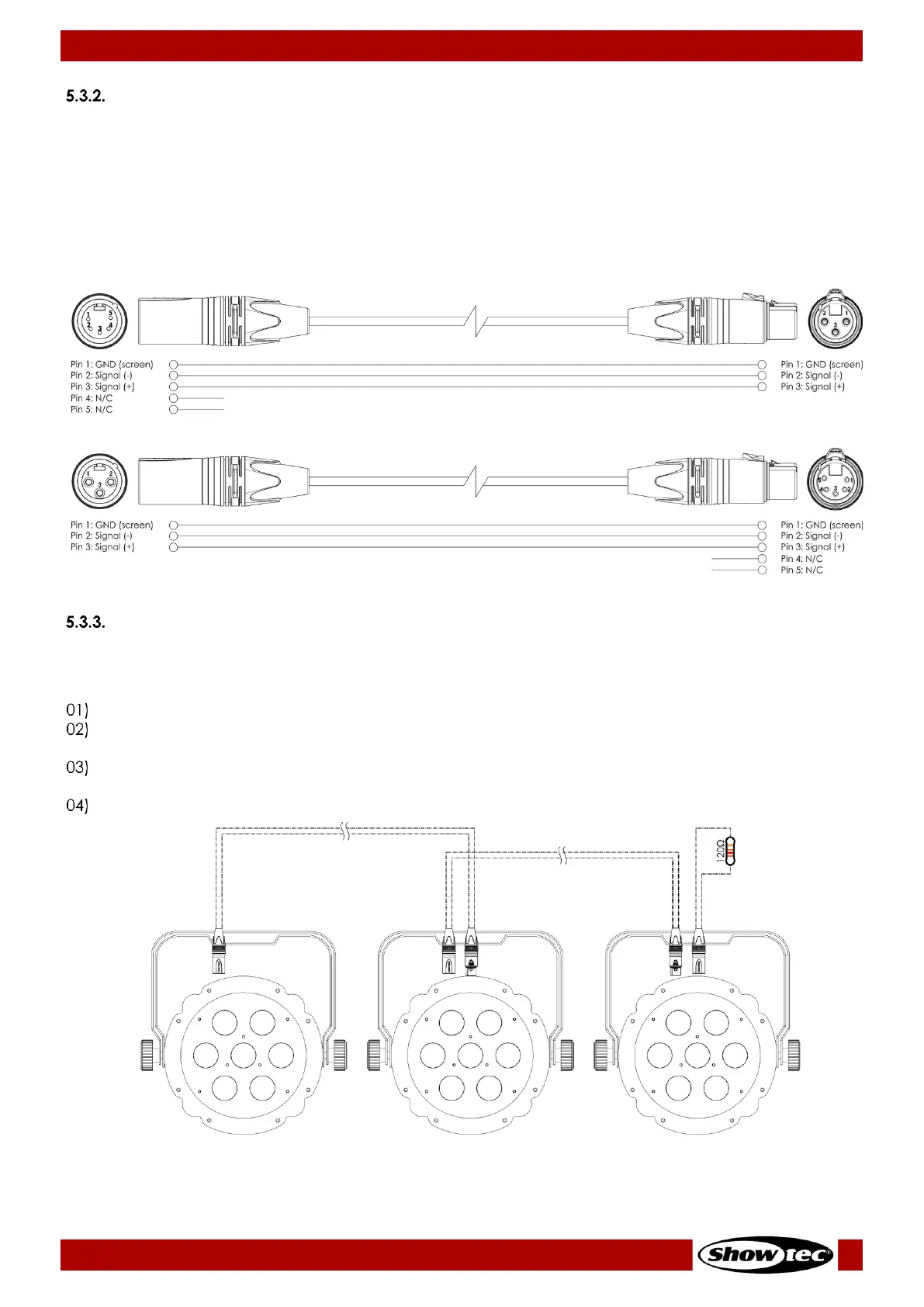 Shielded twisted-pair cables with 3-pin XLR connectors must be used for reliable DMX connection. You