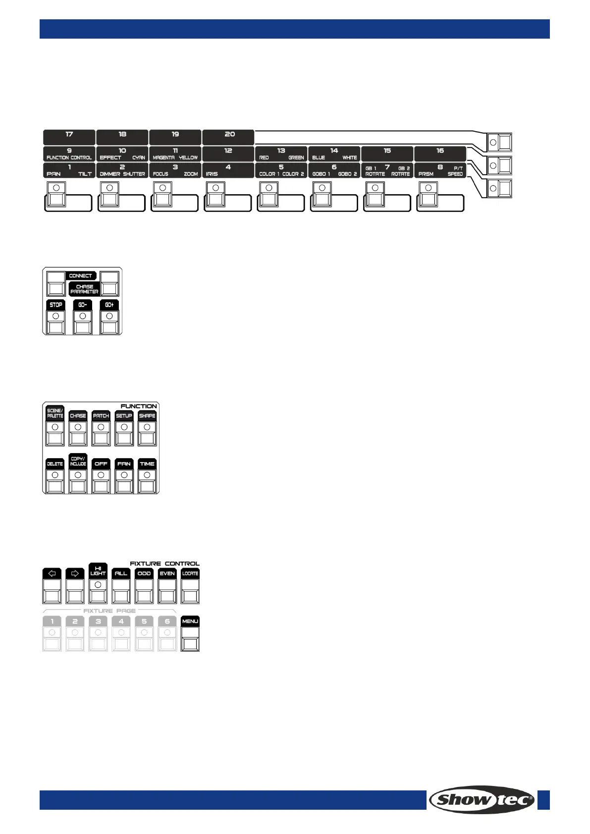 Operations about scene storage and copy or fixture patch can be implemented in this area. The LED