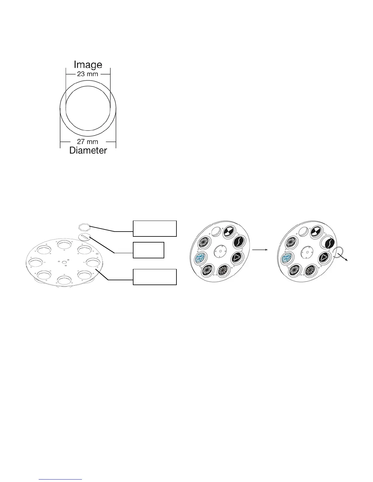 2. Make sure that the gobo you want to insert has the same size. For the right size, see below.