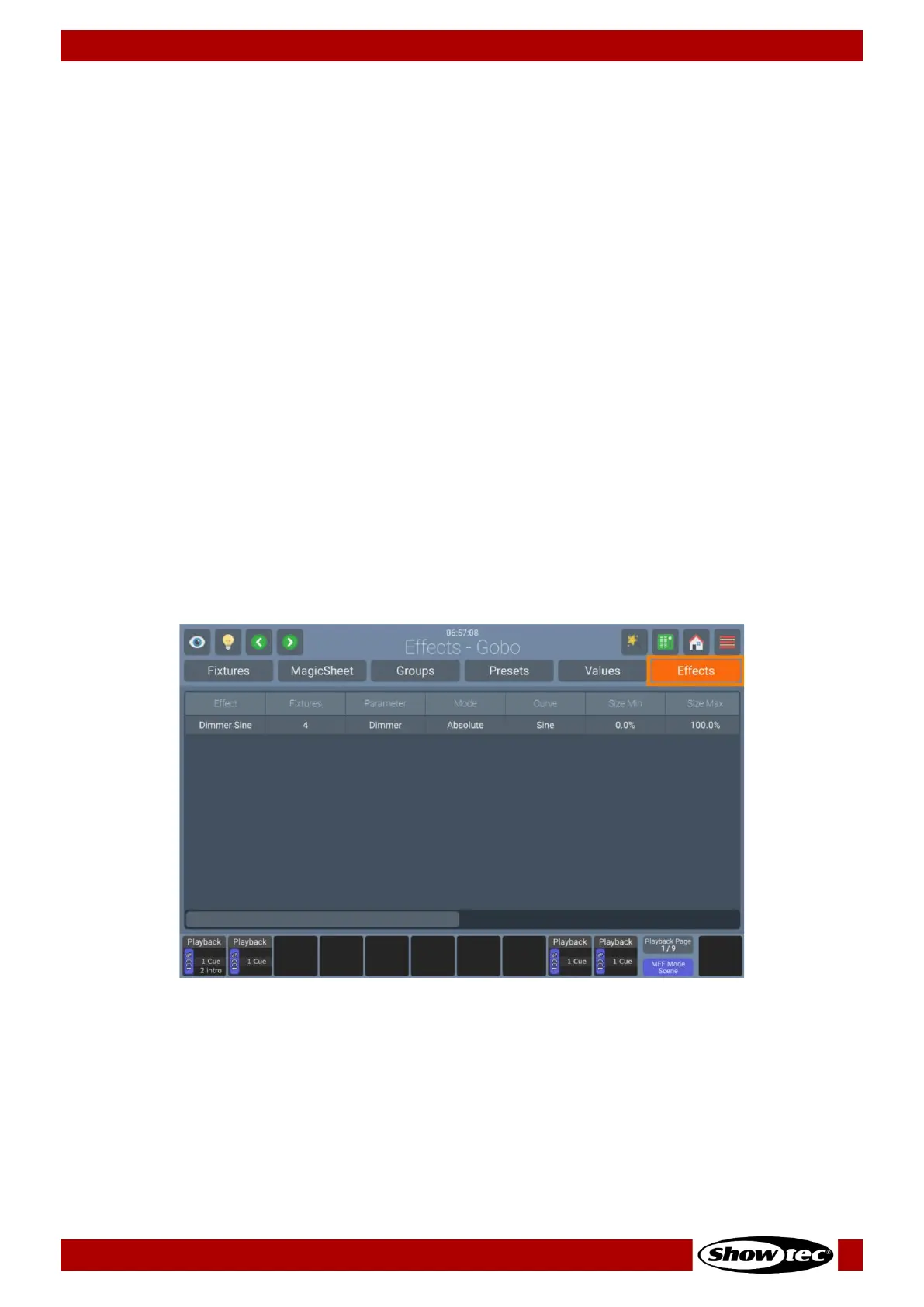 Effects created on the LAMPY control console are stored into Playbacks, Scenes or Executors. If a