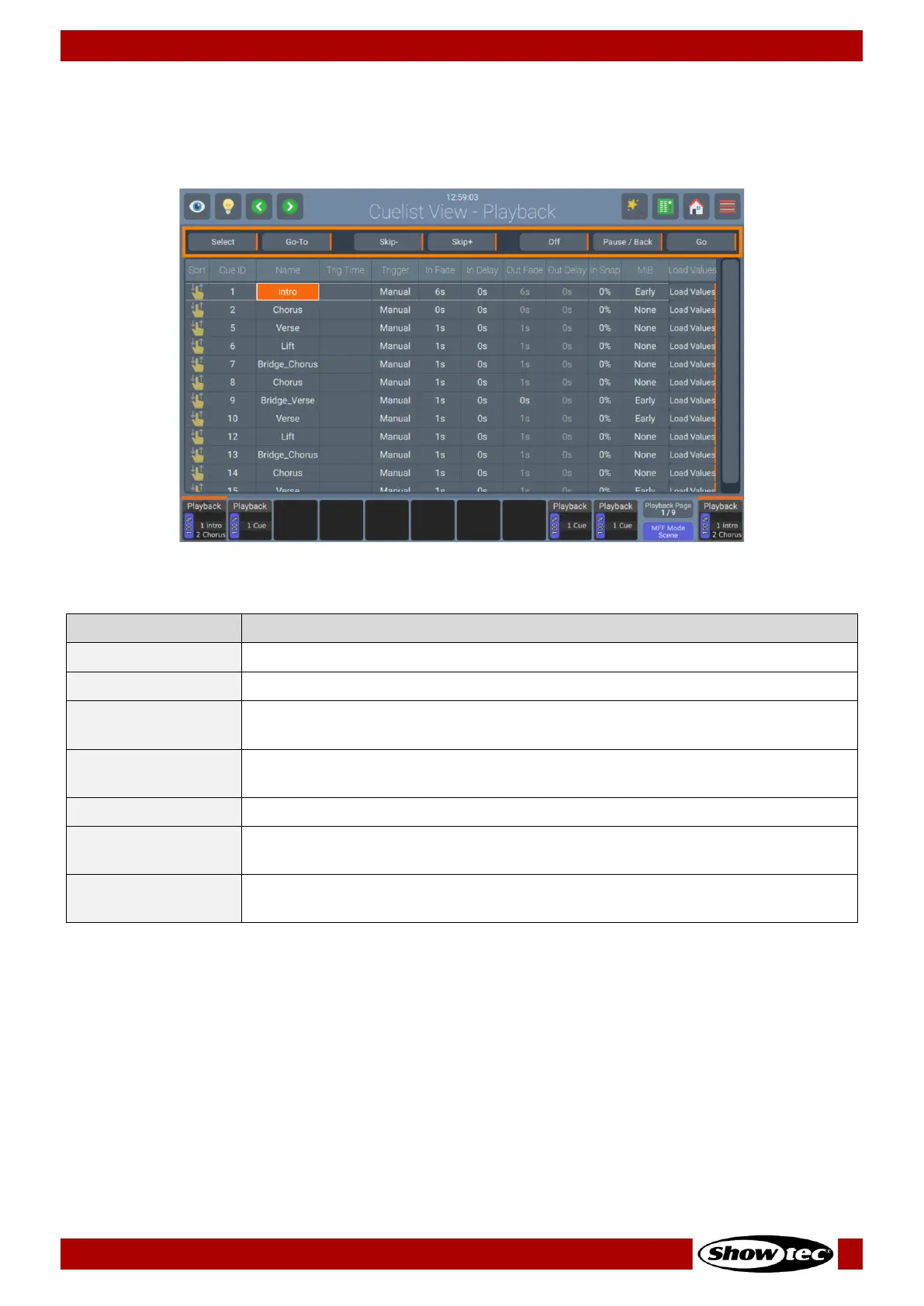 Skips to the next cue in the Playback without switching it on. If the Playback is