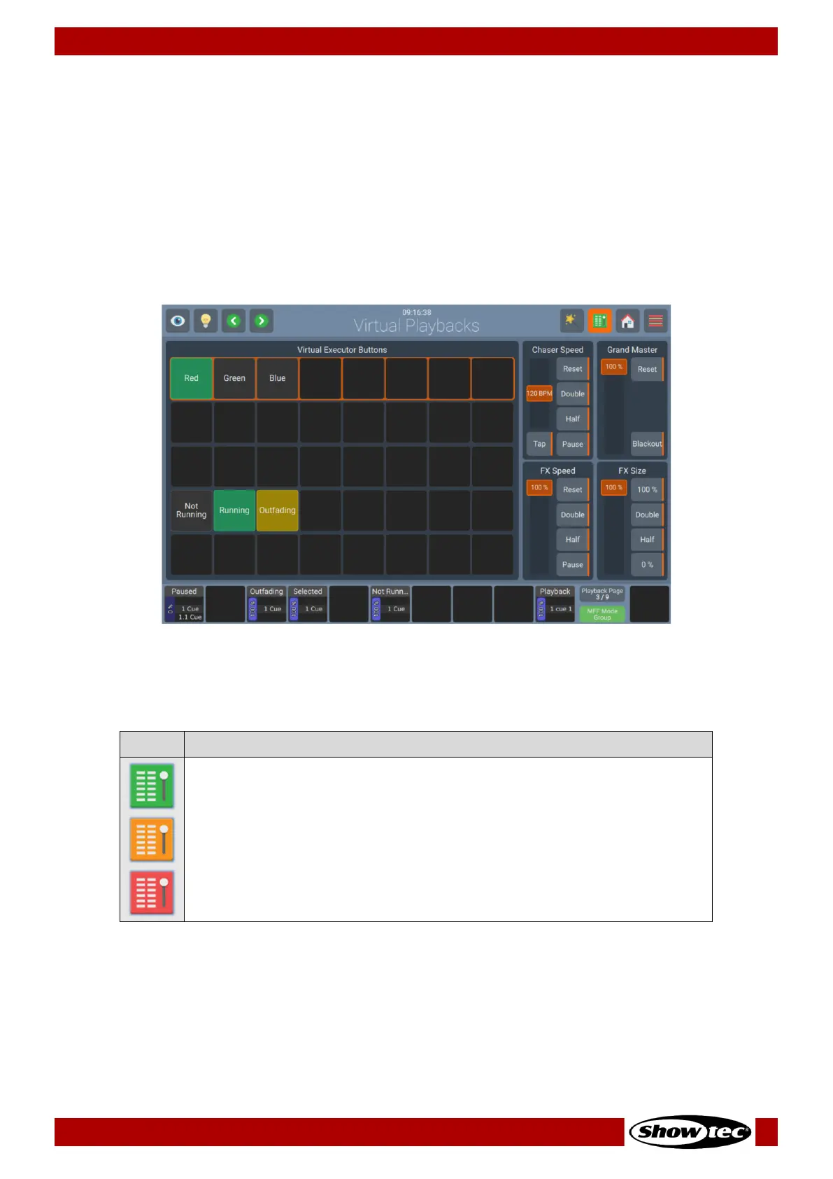 Furthermore, the Virtual Executor Window contains global Speed Faders that affect Executors, Playbacks