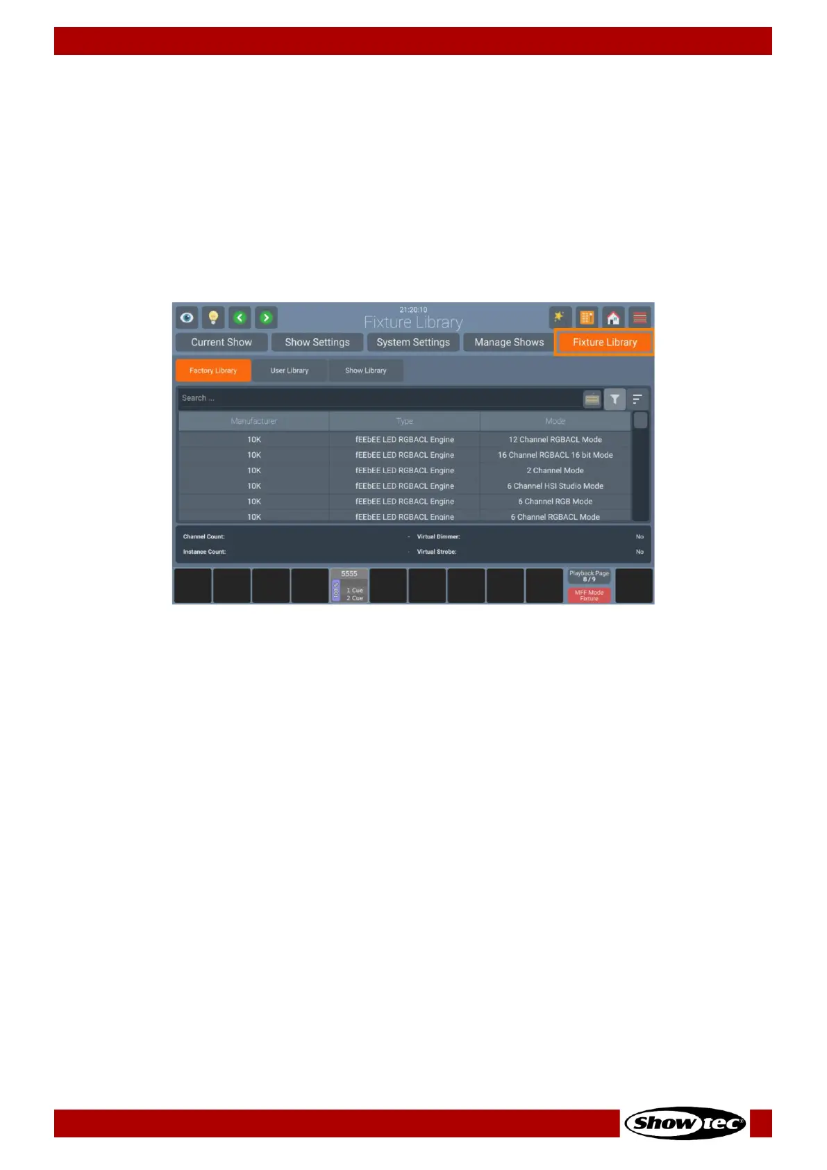 Fixture Library tab in the Setup Menu. If a fixture type is modified within the Show Library and those