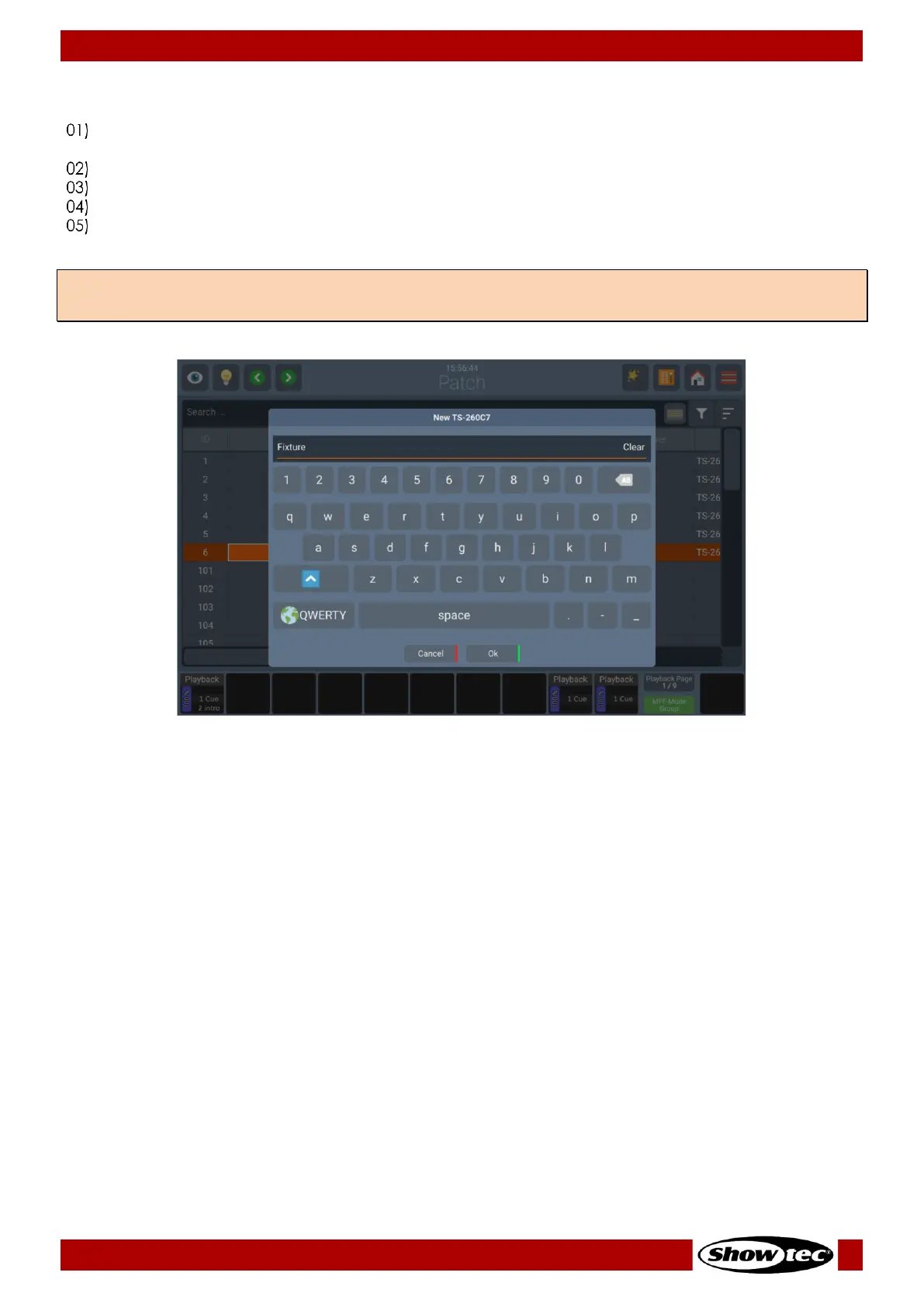 Type the new Name of the Fixture using the On-Screen-Keyboard or using an USB-Keyboard.