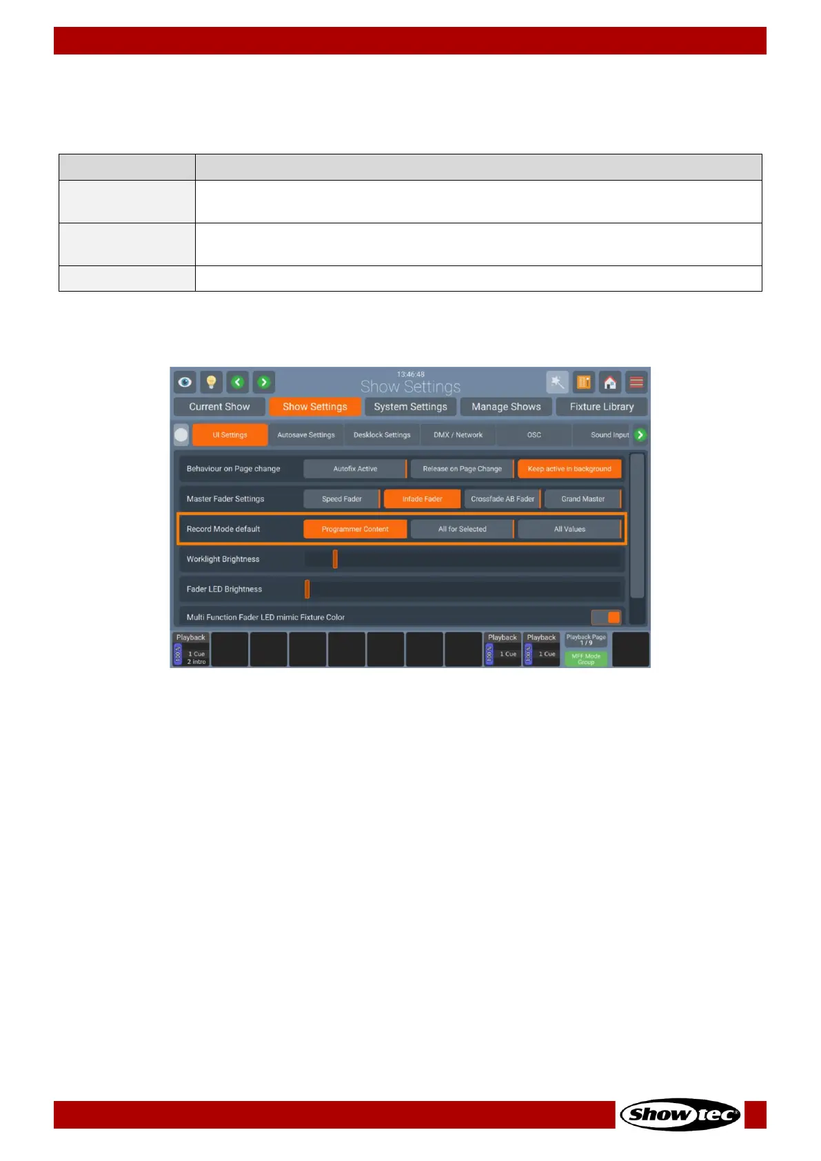 Fig. 53: Show Settings Record Mode default