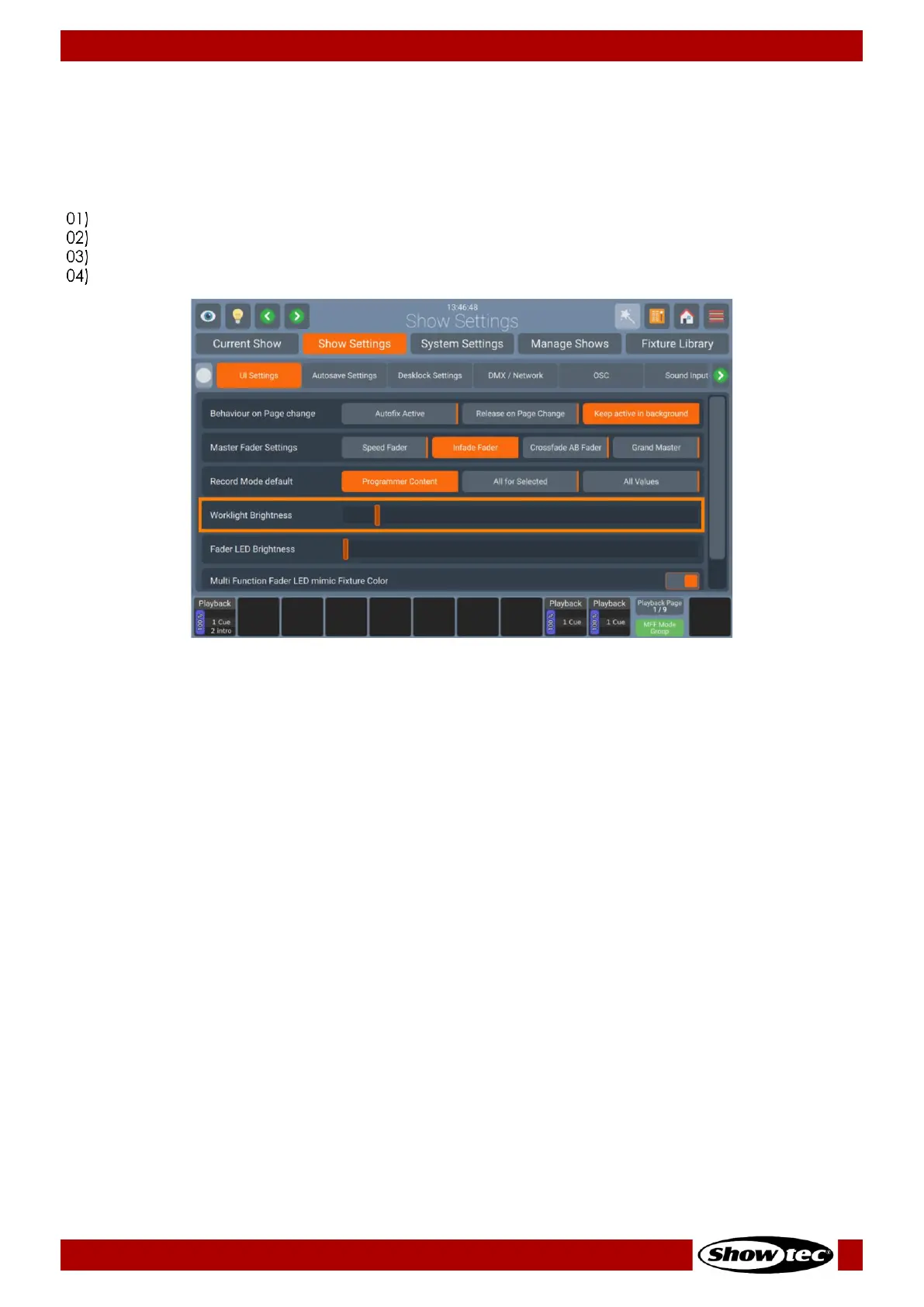 Select the UI Settings page and scroll down to Worklight Brightness.