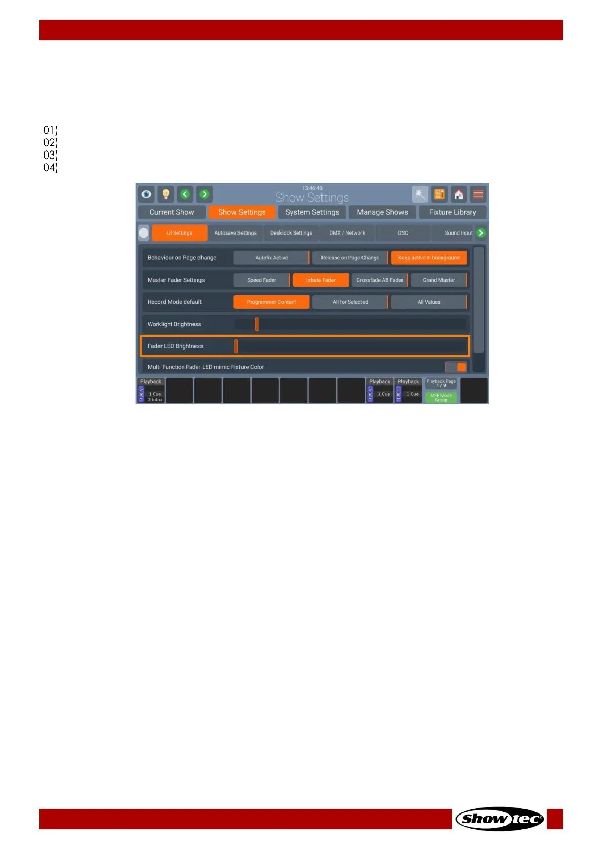 Fig. 55: Show Settings Maximum Fader LED Brightness