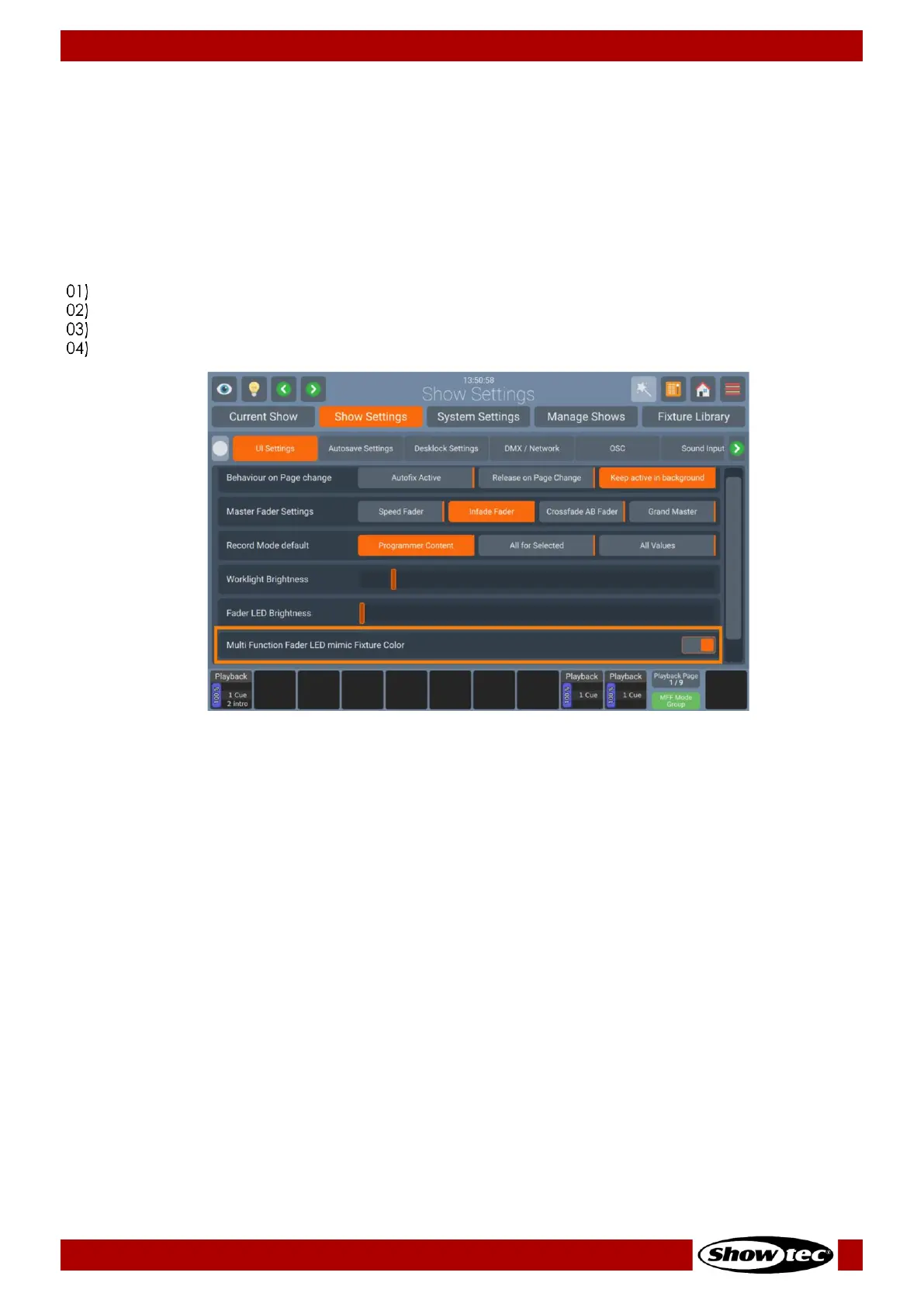 Please note that this setting only affects the LEDs behavior when the Multi-Function Faders are set to