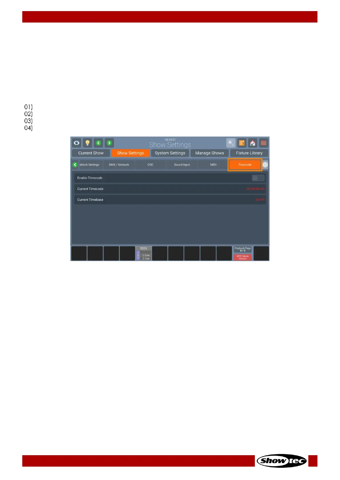 incoming timecode signal and displays the current timecode status within the Timecode Input Group